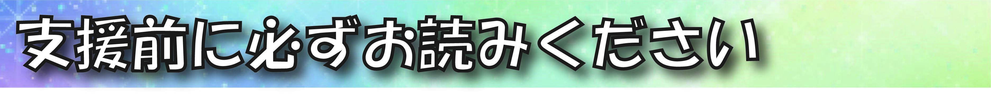 ※支援時に備考欄(リターンに関するご希望)に掲載希望のお名前をご記入下さい。(10文字以内本名可)掲載を希望しない場合は『記載なし』と記入ください。特にご希望がない場合はCAMPFIREにて使用されているハンドルネームを使用させて頂きます、また特定の人物を比喩する内容や公序良俗に反する内容に関しては掲載をお断りする可能性ございますのでご注意ください。