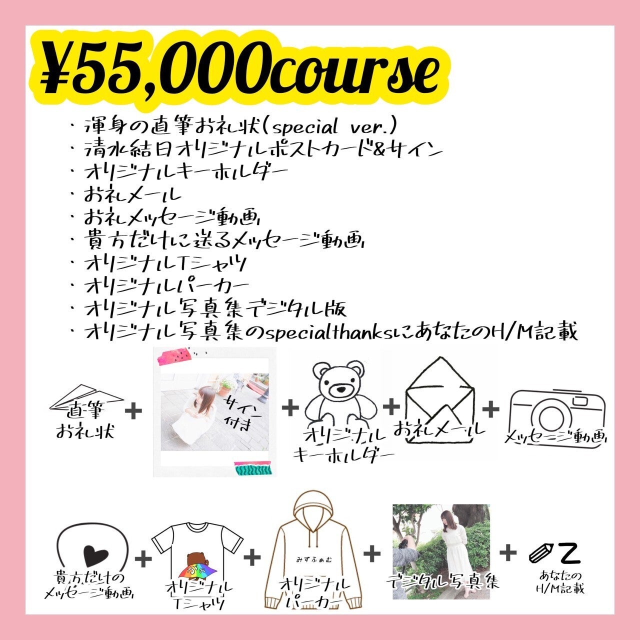 ※オリジナルパーカー及びTシャツの写真はイメージです。清水結日オリジナルデザインになります。サイズとカラー(黒・白・水色)からお選びください。パーカーオンス/8 Tシャツオンス/5