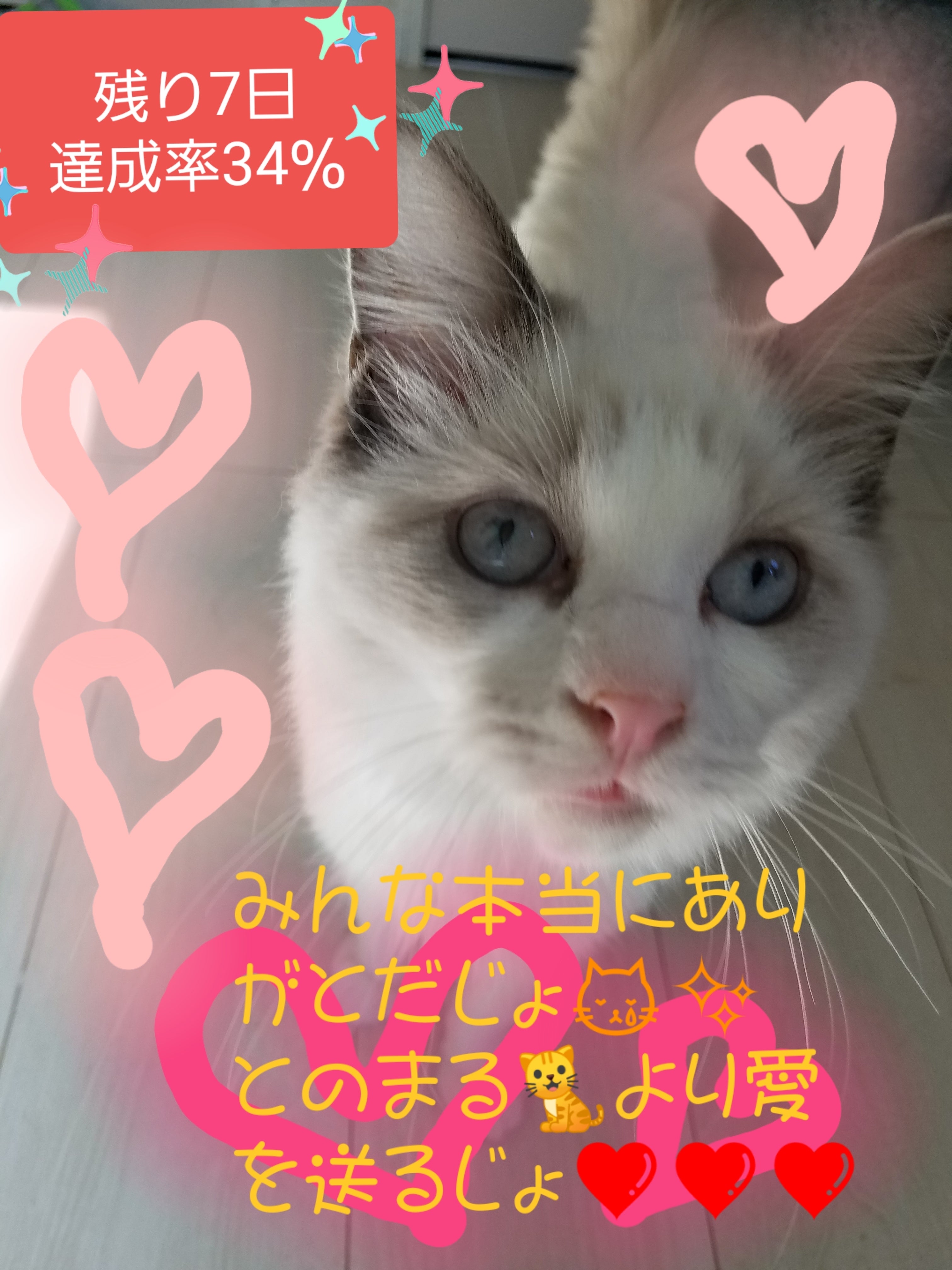 毎日ご支援を頂いて本当に感謝しかありません。本当にとのまるの応援ありがとうございますm(_ _)m体重2.85キロになりました。病院から電話があり、炎症数値は基準値におさまり、コロナウィルスも検出されなかったそうです!!まずは一安心です。ただFcov抗体価1600でした。油断しないで、ストレスに強い子に育てたいと思います。あと7日間宜しくお願いしますm(_ _)m