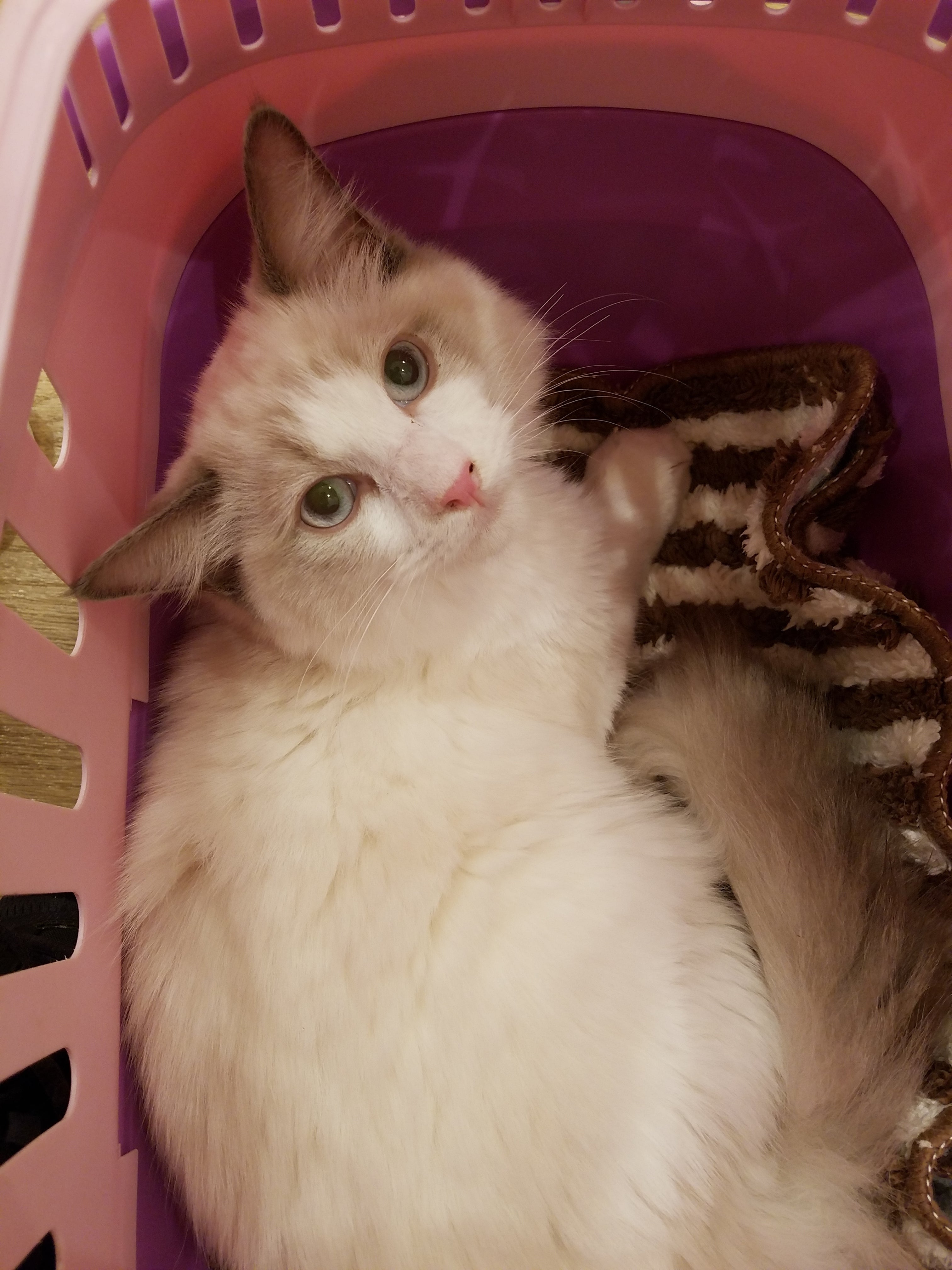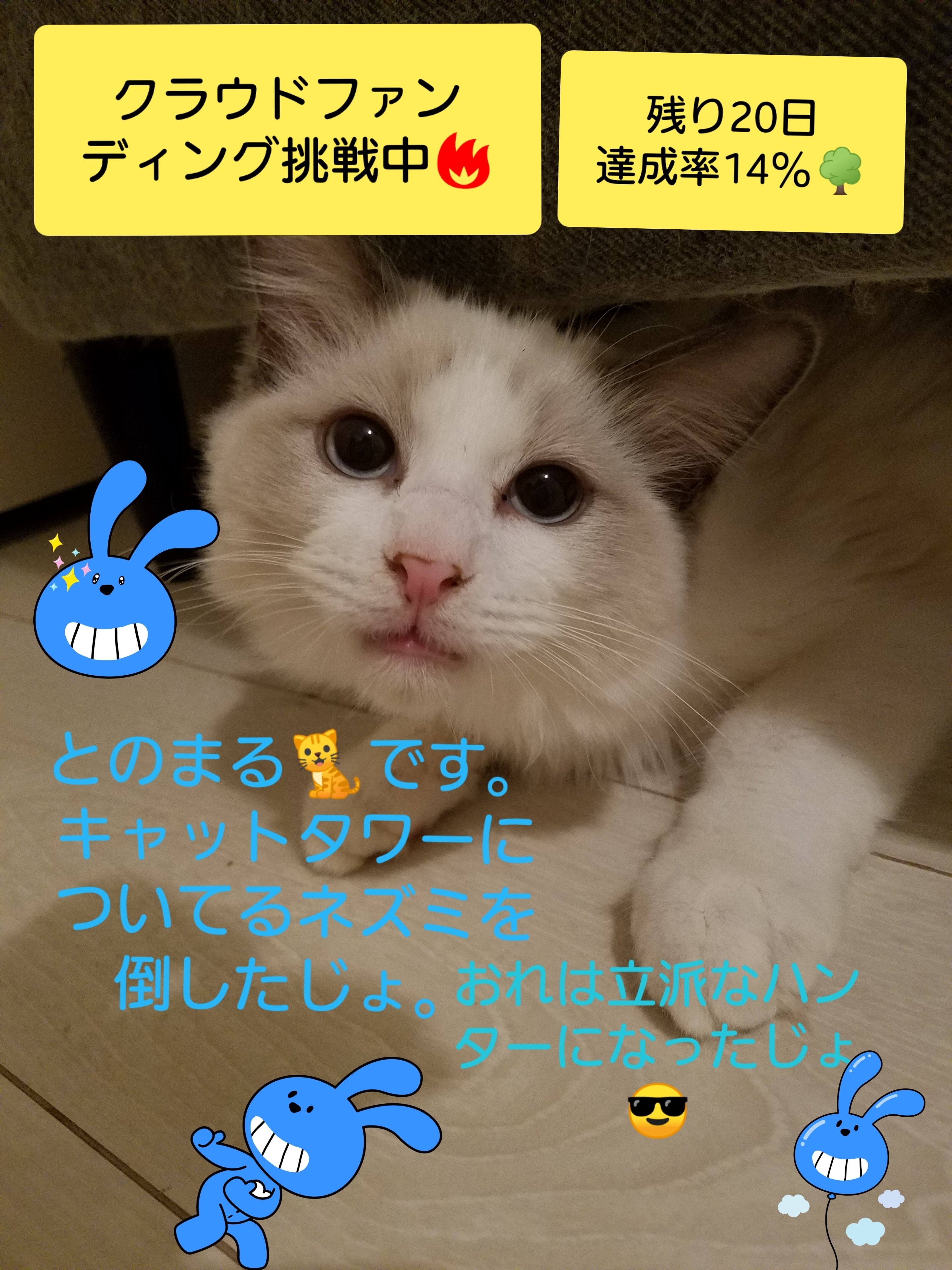 とのまるは今体重が2.7キロなんですがうちに来たときは2.2キロでした。前の飼い主様がアレルギーが出てしまい飼えなくなり、知り合いの方からうちにもラグドールがいたのでお願い出来ないかと話がきました。正直闘病中の子がいたため1度お断りしました。でも2.3日中に手離さないと保健所に…と言われてしまいほっとけなくて引き取りました。コロナで在宅になり時間があるから買ったらしいです。うちに来てすぐ様子がおかしい事、猫伝染性腹膜炎になった事を知り合いを通して伝えましたが、無視だったそうです。まだ我が家に来て1ヶ月もたっていないですが、なんだか毎日が内容が濃い1日1日をとのまるとすごしています。命を引き受けたのだから私は何があってもとのまるを元気にしてあげたいです。ちなみに私も猫アレルギーですが、くしゃみや目が痒いぐらい我慢出来ます。可愛さのが勝っちゃいますね。