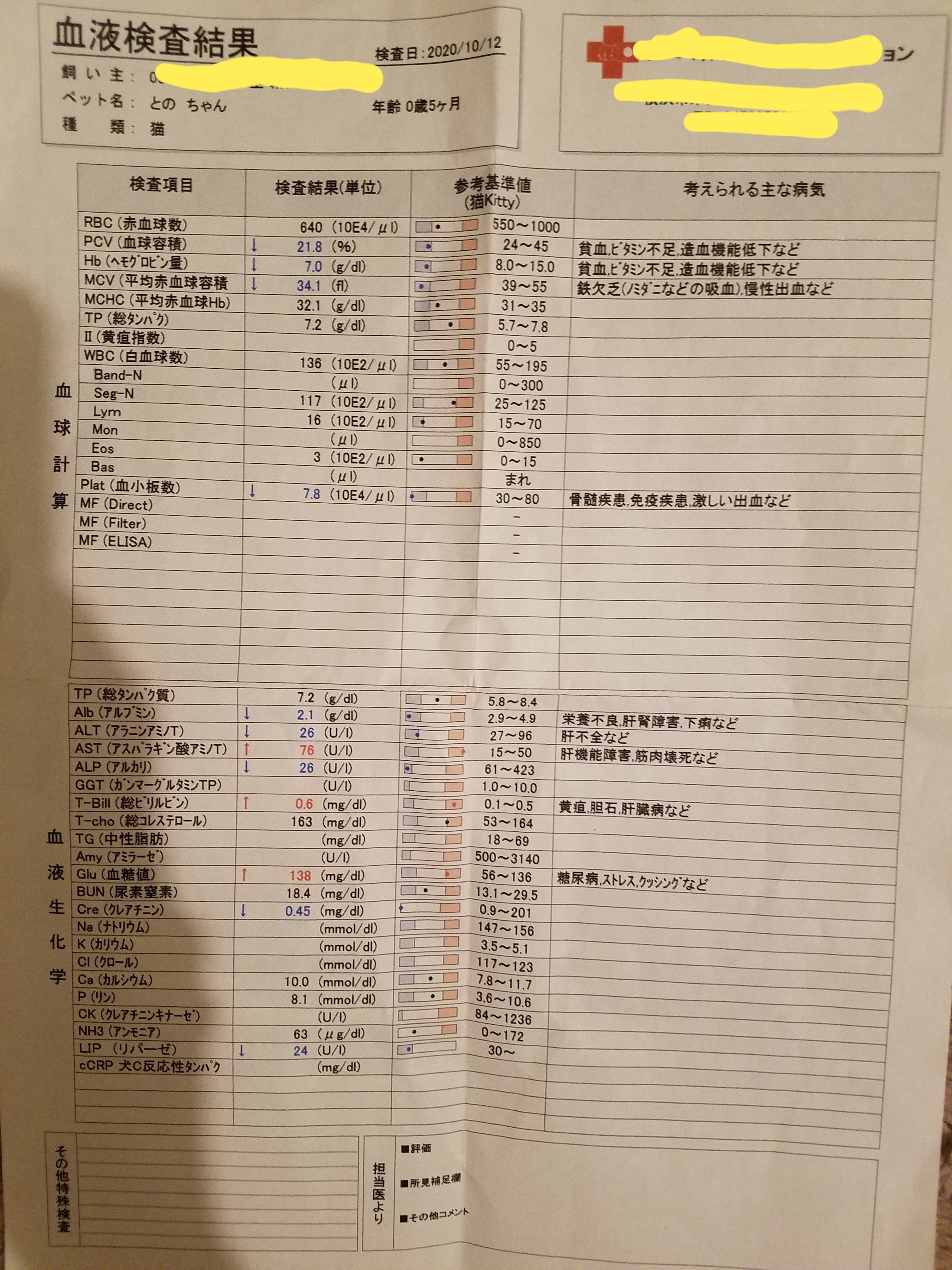 次の日呼吸が早くなり、2件目の病院で先生にもしかしてFIPですか?と聞いた所、先生の顔色も変わりすぐに血液検査、エコーを緊急でして頂きました。とのまるは呼吸が苦しそうだったため酸素室に入りながら検査しました。PCR検査に出していないから100%ではないが、胸水がたまっていて少し抜いた所、黄色で少しとろっとしているのが抜けたのでほぼ猫伝染性腹膜炎で間違いないという結果でした。