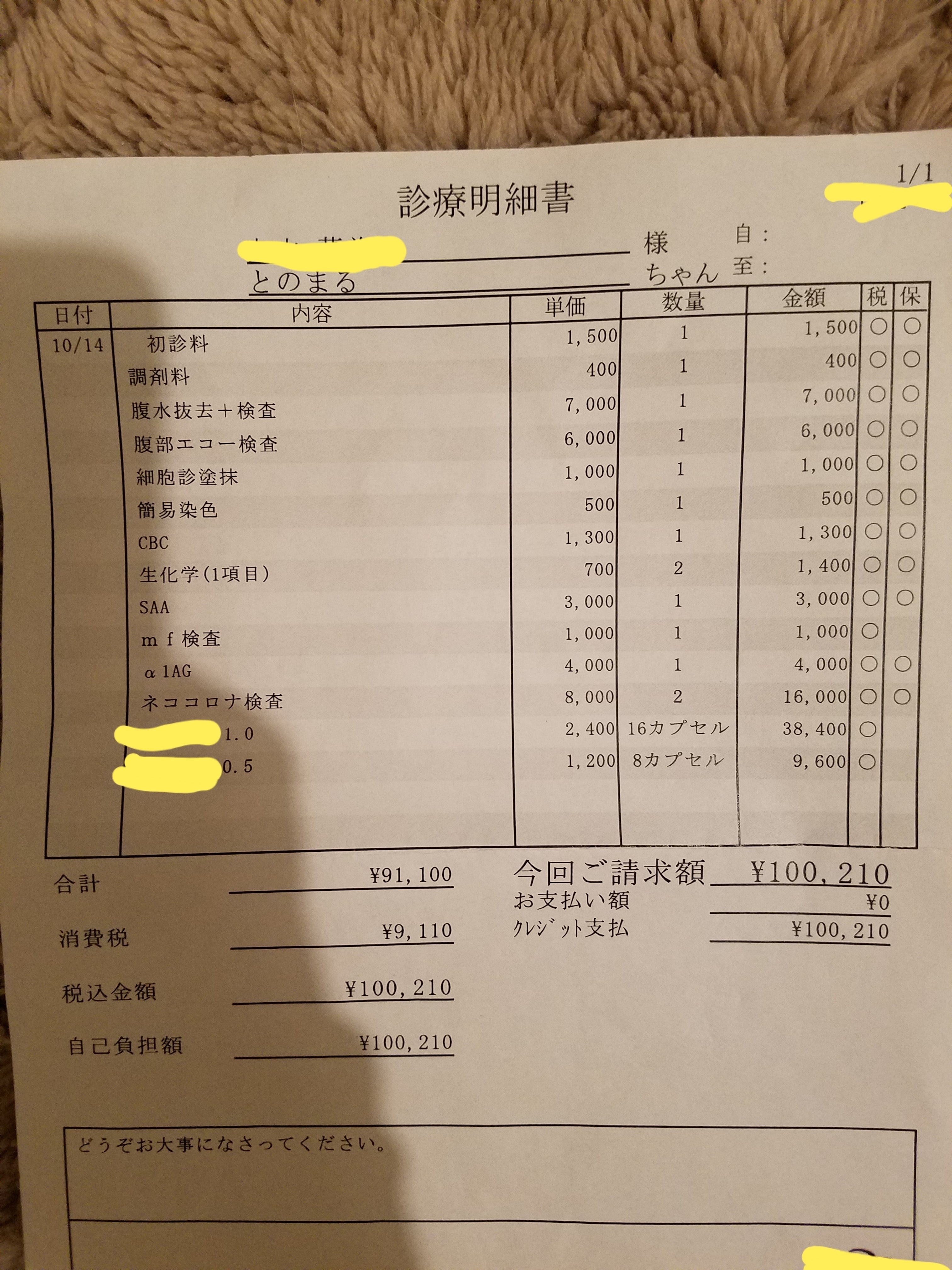 治療費用はウェットタイプ、ドライタイプ、体重、症状でかわっていきますが、はじめの先生の予想だと