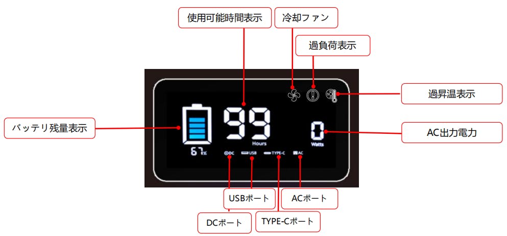 ポータブルバッテリー本体のバッテリー残量をパーセンテージ表示をします。