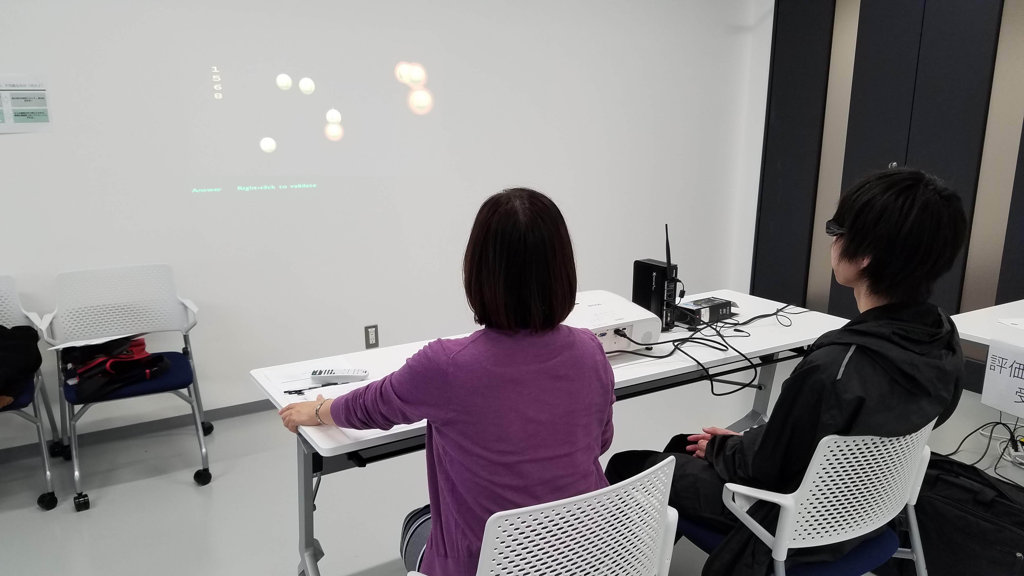 研究の一環として、九州産業大学でビジョントレーニング(ニューロトラッカー)を受ける荒木選手
