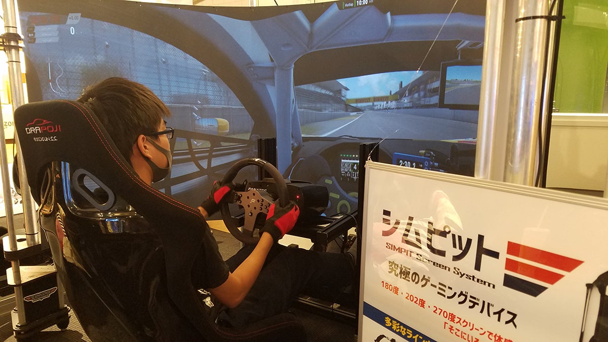 202度ぐるりとプレイヤーを囲む「シムピットスクリーン」で、よりリアルな実車の雰囲気を体感