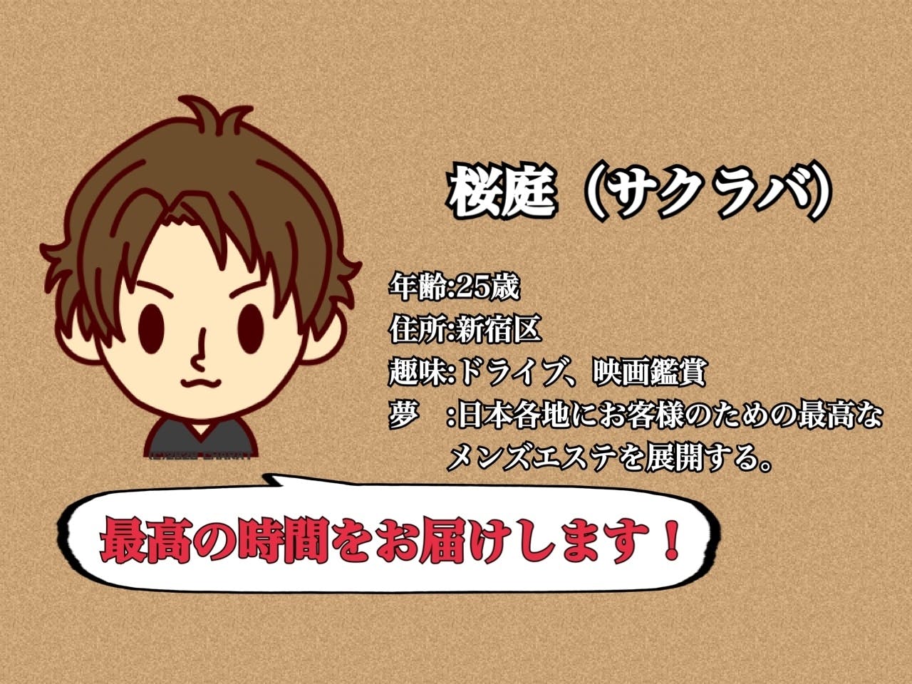 私は都内中心に多数のメンズエステサロンの立ち上げから運営まで様々な形で関わらせて頂きサポートを中心として活動して来ました桜庭(サクラバ)と申します。