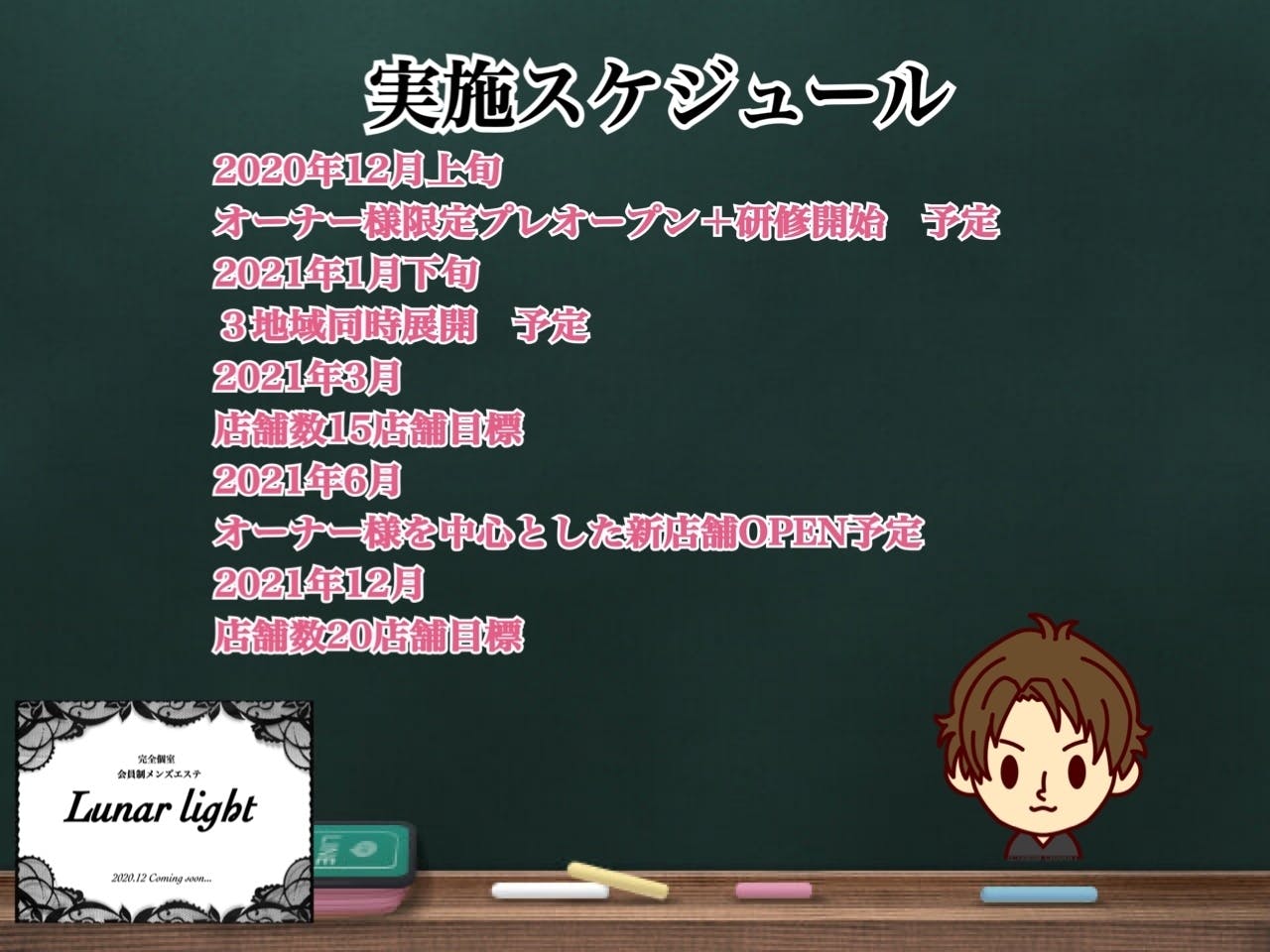 2020年12月上旬 オーナー様限定プレオープン+研修開始 予定