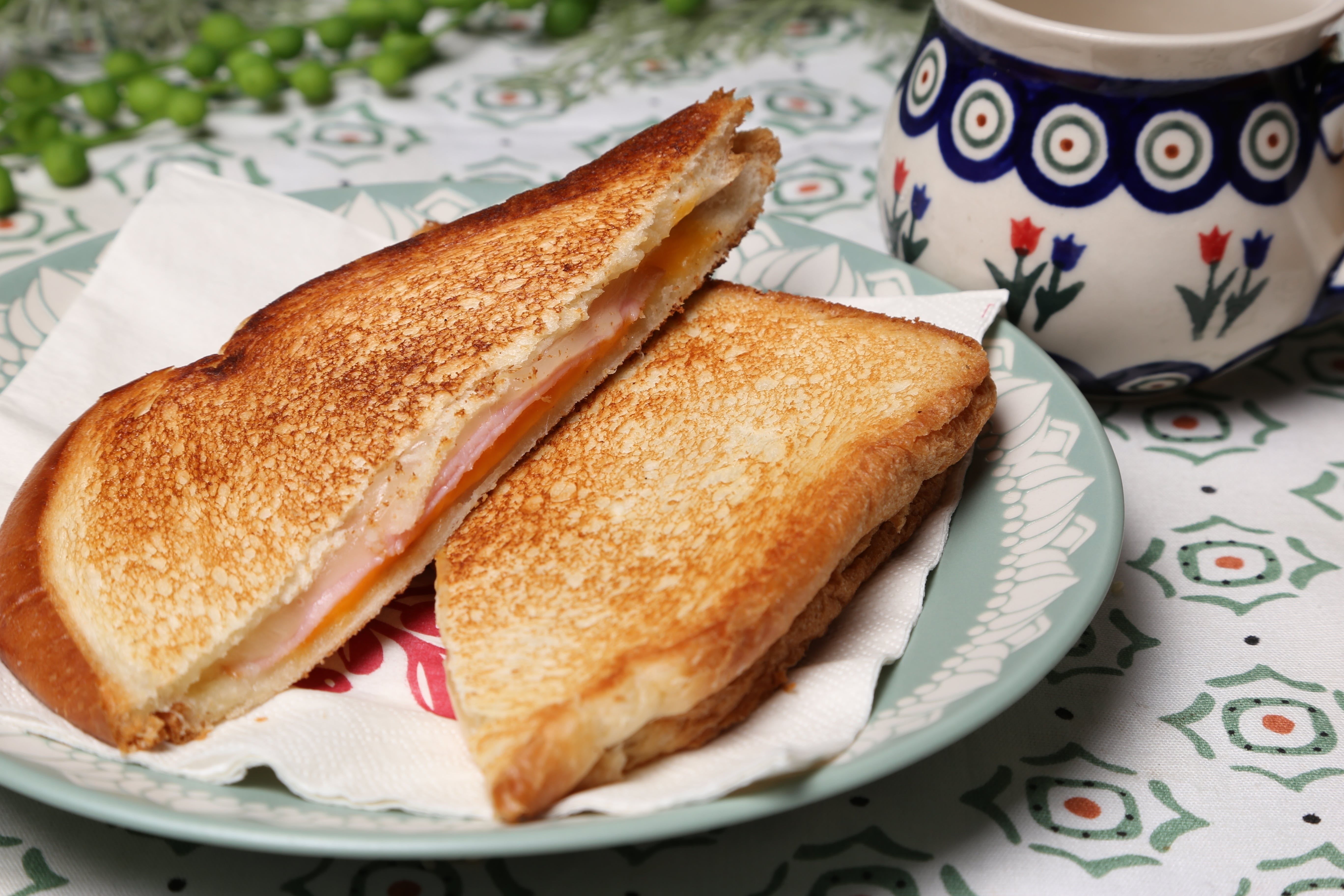 両面をバターでカリッと焼いた「グリルドチーズ」のサンドイッチ。