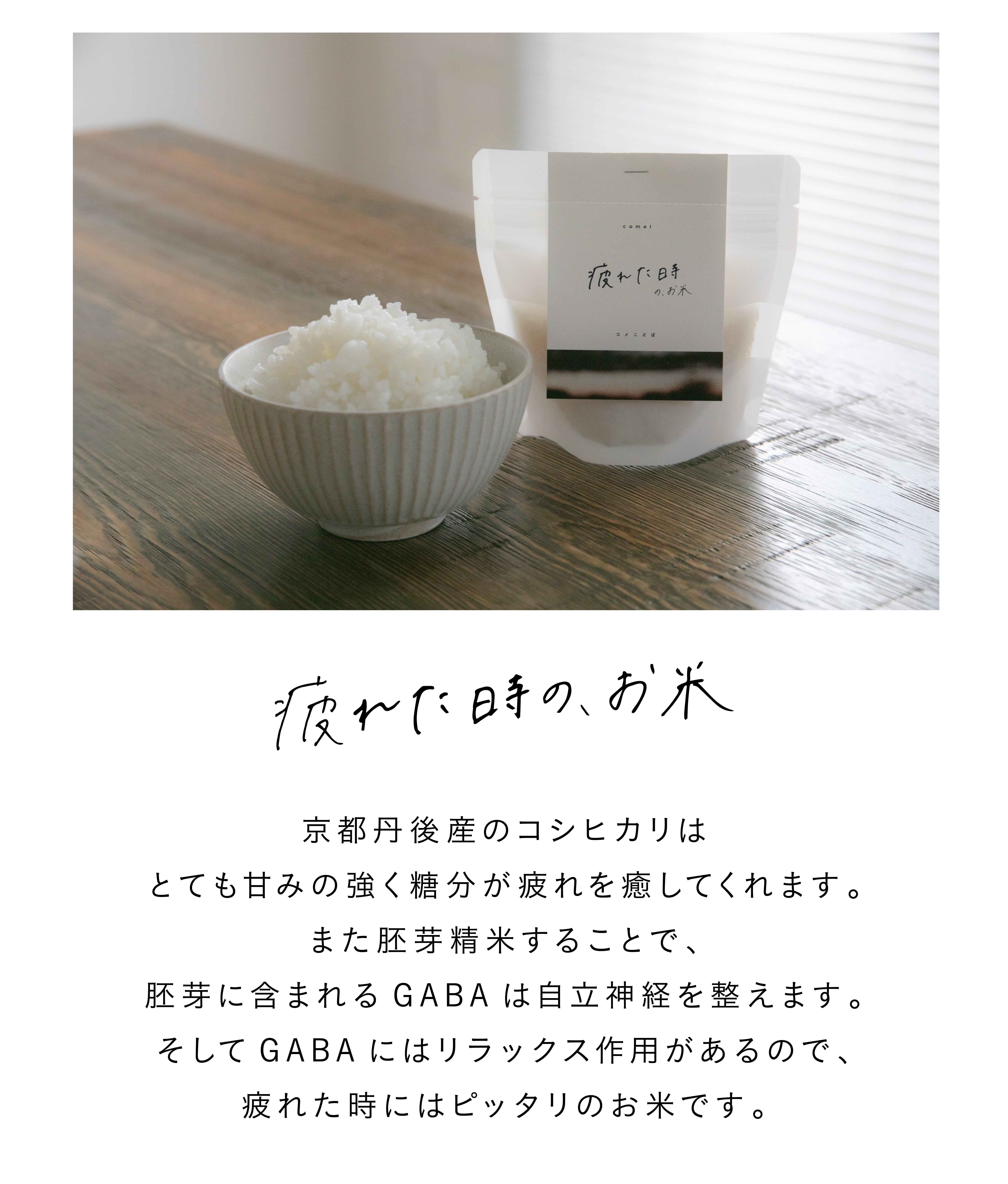 「ありがとうのお米」は、ふっくらとした食感でやさしさや愛情を表現し、「疲れた時のお米」は、GABAの豊富な胚芽米で疲れを癒し、「ととのえるお米」は、雑穀米や玄米などのブレンド米で健康をサポートします。