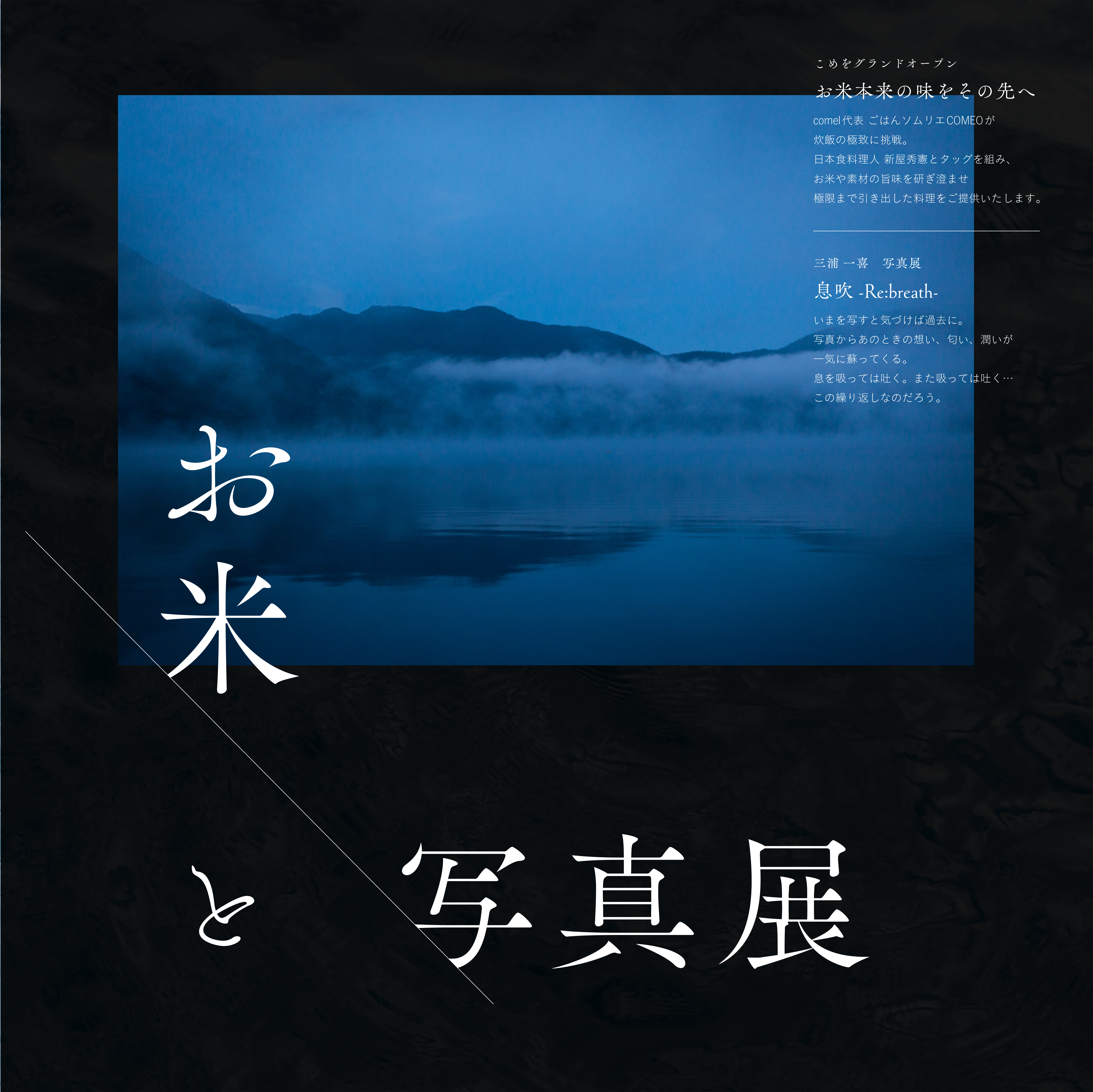 2021/03/22 18:24皆様いかがお過ごしでしょうか?comel代表のCOMEOです。コロナや緊急自体宣言など様々な未曾有の出来事があり、イベントも延期に延期を重ね、皆様にご迷惑おかけしてしまったこと、誠に申し訳ありません。そして今回皆様に嬉しいご報告があります。なんと!!ようやくこの度ようやくイベント開催することになりました!!そしてそのイベント内容とは・・・?それは会員制お米料亭「こめを」のオープン記念パーティです!!!クラウドファンディングで支援していただいた金額を元に今回お店をオープンさせていただくことになりました。「こめを」〜お米本来の味をその先へ〜「こめを」はお米本来の味をその先へと紡いでいくために、これからの「美味しい」を作り上げていくために生まれました。日本食料理人 新屋秀憲に監修していただき、お米の伝統に革新を生みたいと思います。皆様にお米本来の旨味を体感していただくためのお米を中心とした塩と出汁のエッセンスの元今回のコース料理をご提供したいと考えております。そして今回のイベントでは「こめを」の世界観を最大限に体感していただきたいと思い、今回comelのフォトグラファーを努めていただいた「三浦一喜」さんとコラボしてオープニングイベントを行いたいと思います。素敵な写真とお料理を堪能していただければ幸いです。皆様の御来店心よりお待ち申し上げます。三浦 一喜 写真展息吹 -Re:breath-いまを写すと気づけば過去に。写真からあのときの想い、匂い、潤いが一気に蘇ってくる。息を吸っては吐く。また吸っては吐く…この繰り返しなのだろう。「お米と写真展」詳細こめを 店主 COMEO写真 三浦一喜開催期間 2021年 4月15日(木)〜4月23日(金)12:00〜22:00最終受付 21:00料金無料でご招待させていただきます。場所 東京都港区六本木7-9-4「こめを」アクセス大江戸線、日比谷線「六本木駅」8番出口 徒歩2分千代田線「乃木坂駅」5番出口 徒歩5分申込フォームhttps://docs.google.com/forms/d/e/1FAIpQLSf_eZMwuD-wi9rikgoNeJgxIqLNA2uuB-xvWrTij8S6Ai4M0A/viewform※また今回来店が難しい方には無期限の「こめを」お米と出汁のコース招待券をプレゼントいたします。難しい方は是非CAMP FIREのcomelページよりメッセージいただければ幸いです。 もっと見る