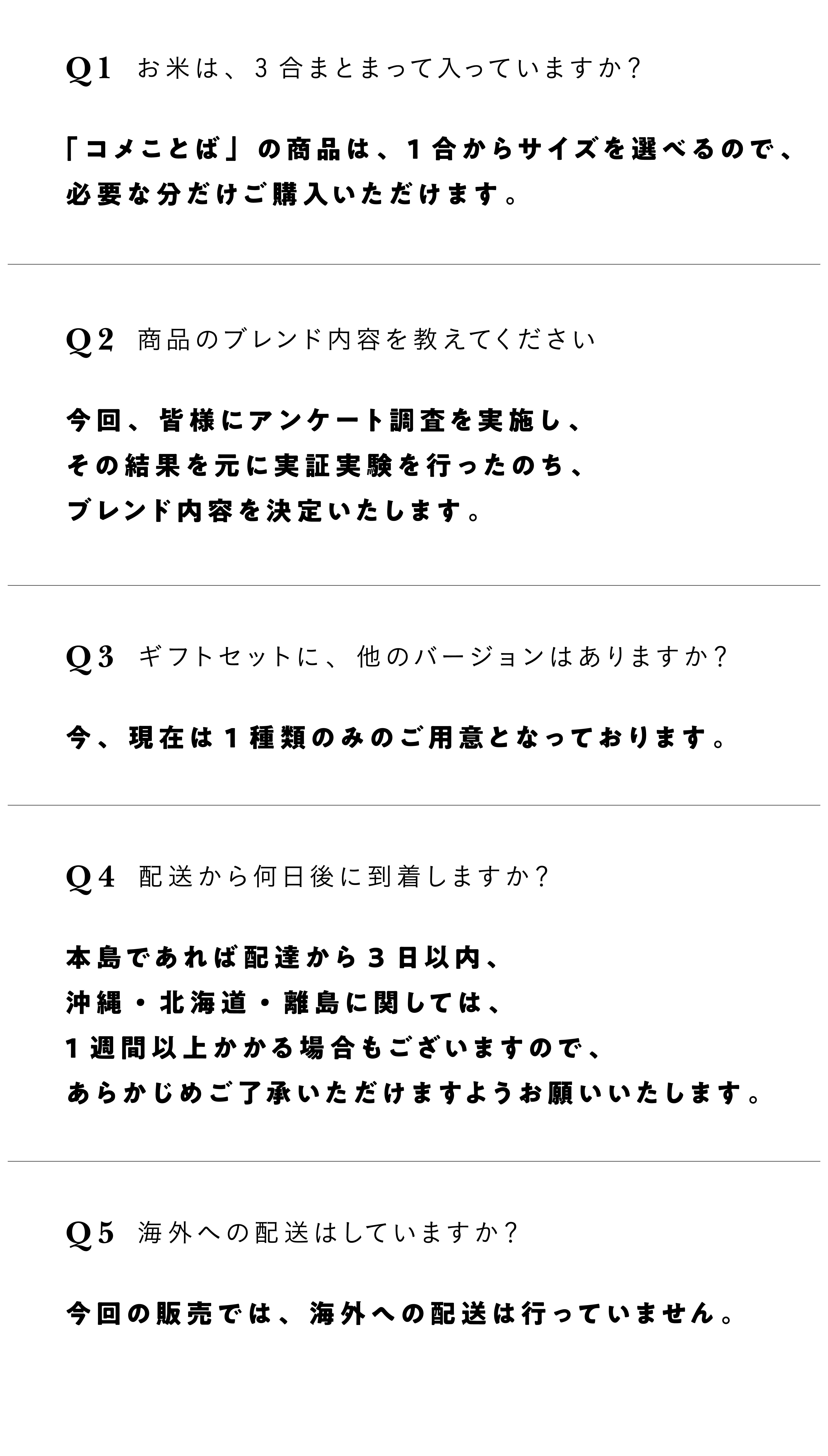 2021/01/17 11:47皆様あけましておめでとうございます。この度はクラウドファンディングご支援いただき誠にありがとうございます。全ての皆様に商品を届けることができ、SNSで皆様の嬉しい声が上がることが大変嬉しく思います。ギフトで渡された方も、自分にご褒美として買われた方も喜んでいただけたでしょうか?正直まだまだなところは多くあり、今回の配送でも皆様にご迷惑おかけしたことは多くあります。ただそんなcomelを皆様は応援してくださり、皆様にご支援いただき第一回に引き続き、第二回も80名の方にご支援いただき¥1056100円を達成することができました。本当にありがとうございました。そして近年ではコロナが大流行して、皆様はいかがお過ごしでしょうか? 再度の緊急自体宣言が発令され、皆様のお暮らしにも多大なる影響を与えたことだと思います。そして2/6,7に予定していたオープニングパーティも中止にせざる終えなくなりました。コロナという状況、緊急事態宣言という中で皆様も気持ちよくイベントを楽しめないんじゃないという想いから延期することといたしました。楽しみにしてくださった皆様本当に申し訳ありません。せっかくお会いして皆様に感謝を伝えられる日を楽しみにしていたので、本当に残念です。ただ延期としましては3月の上旬から中旬に開催を再度させていただこうと思いますので、その際はまた皆様にご報告させていただければと思います。よろしくお願いいたします。そしてそんな中でお米屋さんのcomelにできることを何かと考えた時、原点を省みて見ました。「お米を通して暮らしに温もりを」そんなコンセプトから始まったcomel。 そしてコメことばという商品で皆さんの暮らしを少しでも温かいものにしたい。こんな想いからはじまりました。この想いは、現代社会のスピード感に疑問を抱いたことがきっかけでした。現代を懸命に生きる人は日常に忙殺され、ストレス感じることが多くあり、"自分らしさ"に必要な大切なものを、見失ってしまう機会が多いと感じています。そんな現代社会のスピードはとても速く、ついていこうとするほど、自分らしいペースを失って心の豊かさが置いてきぼりになる。そんな中で多くの人は孤独を感じているのではないでしょうか?そしてそれはこの社会で生きるには必然のことだとも思います。スピード感についていこうとするほど、豊かさを見失い、孤独を感じ、繋がりを感じることができない。だからこそ、私たちは日常にあるお米を通して、皆様の暮らしに寄り添うことを決めたのです。そしてこの度今回ご支援していただいた方全ての方にオンラインサロン「Co Meal」にご招待させていただきたいと思います。このオンラインサロンは名前にもある通り、「Co(共同)」「Meal(食事)」という意味があります。共にする食事のように、みんなが一つのテーブルを囲んで温かい食事をするようにとそんな意味を込めて「Co Meal」としました。オンラインサロンに関してはまた再度告知させていただいてご招待させていただこうと思います。これからも皆様の暮らしに温もりを届けられることを楽しみにし、さらに素敵なお米を提供できるようにcomel一同頑張って参りますので今後ともよろしくお願いいたします。PSCES 2021 Panasonic in Tokyo にこの度comelは100BANCHというブースから出品させていただくことになりました。Youtubeもあるので是非ご覧ください。また今年はたくさんのコラボが生まれますので、楽しみにしていてください!! もっと見る