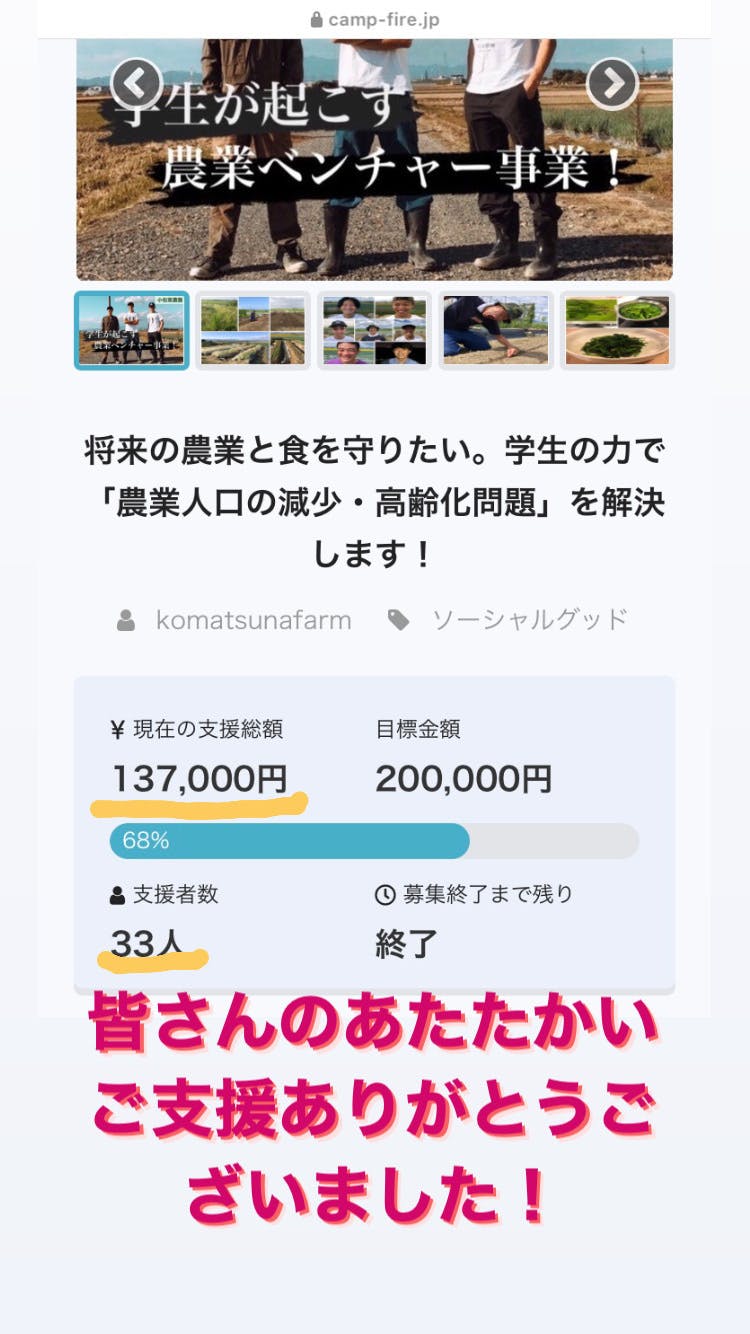 皆さんのお力添えのおかげで、クラウドファンディング無事終了いたしました!