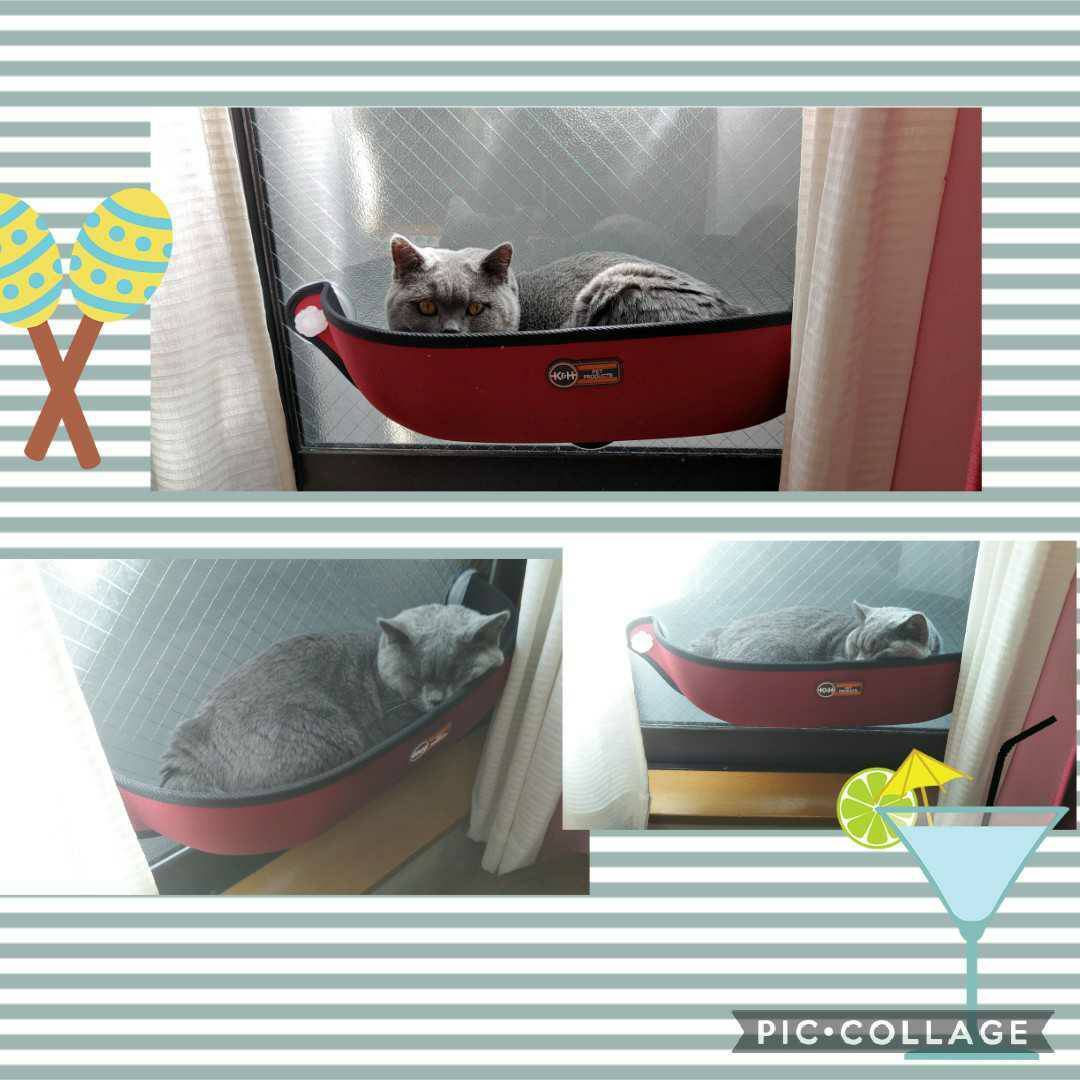窓辺が大好きな らむね に窓用ハンモックをプレゼントp畄q(´∀`*)