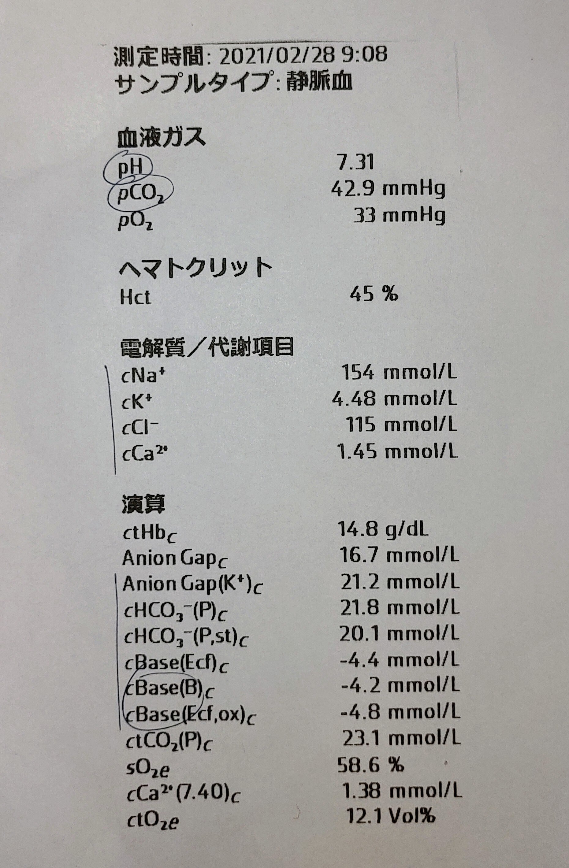血液全体のバランス、血液ガスや電解質も全て良い状態だそうです。