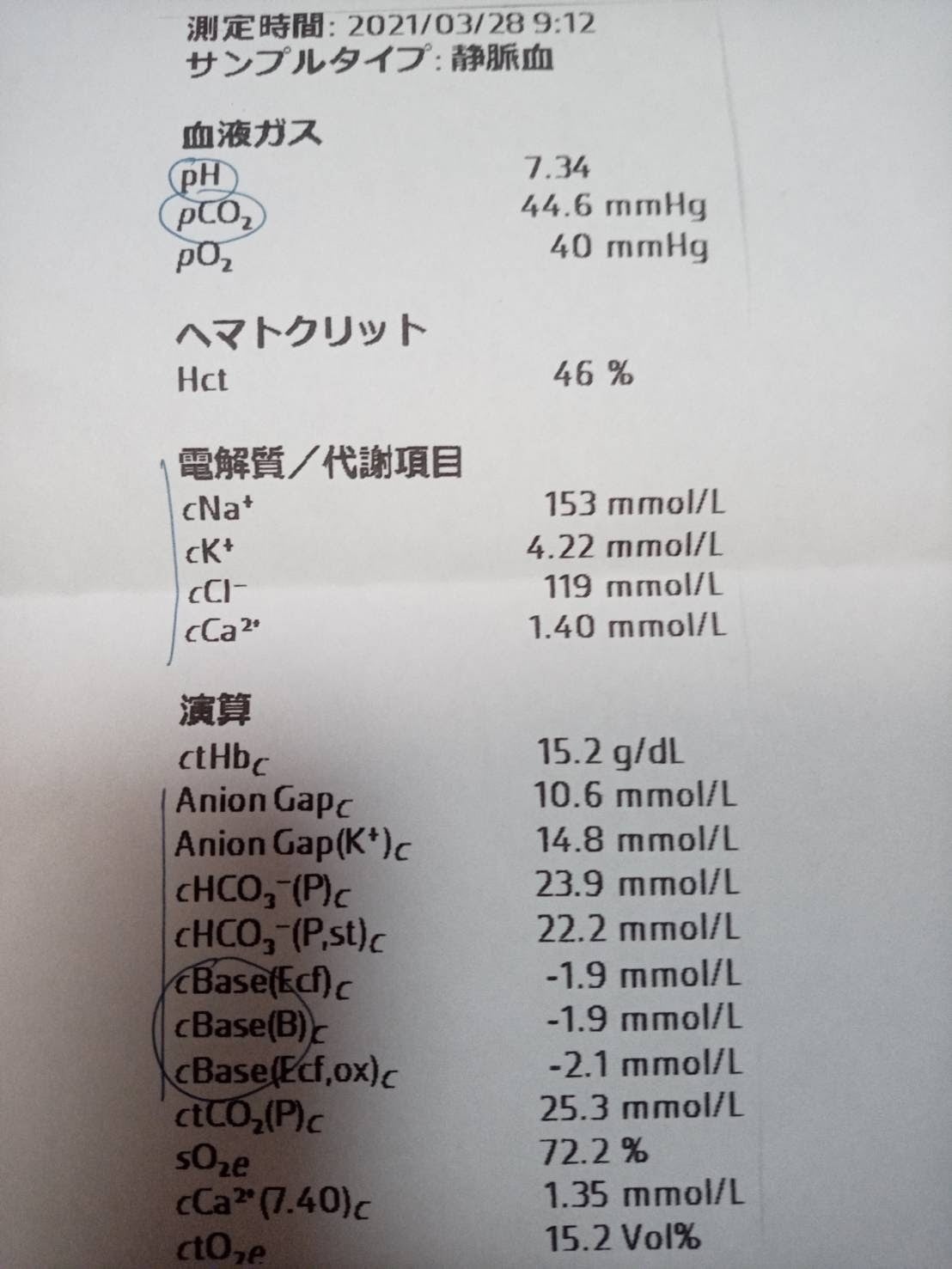 血液全体のバランス、血液ガスや電解質も全て良い状態だそうです。