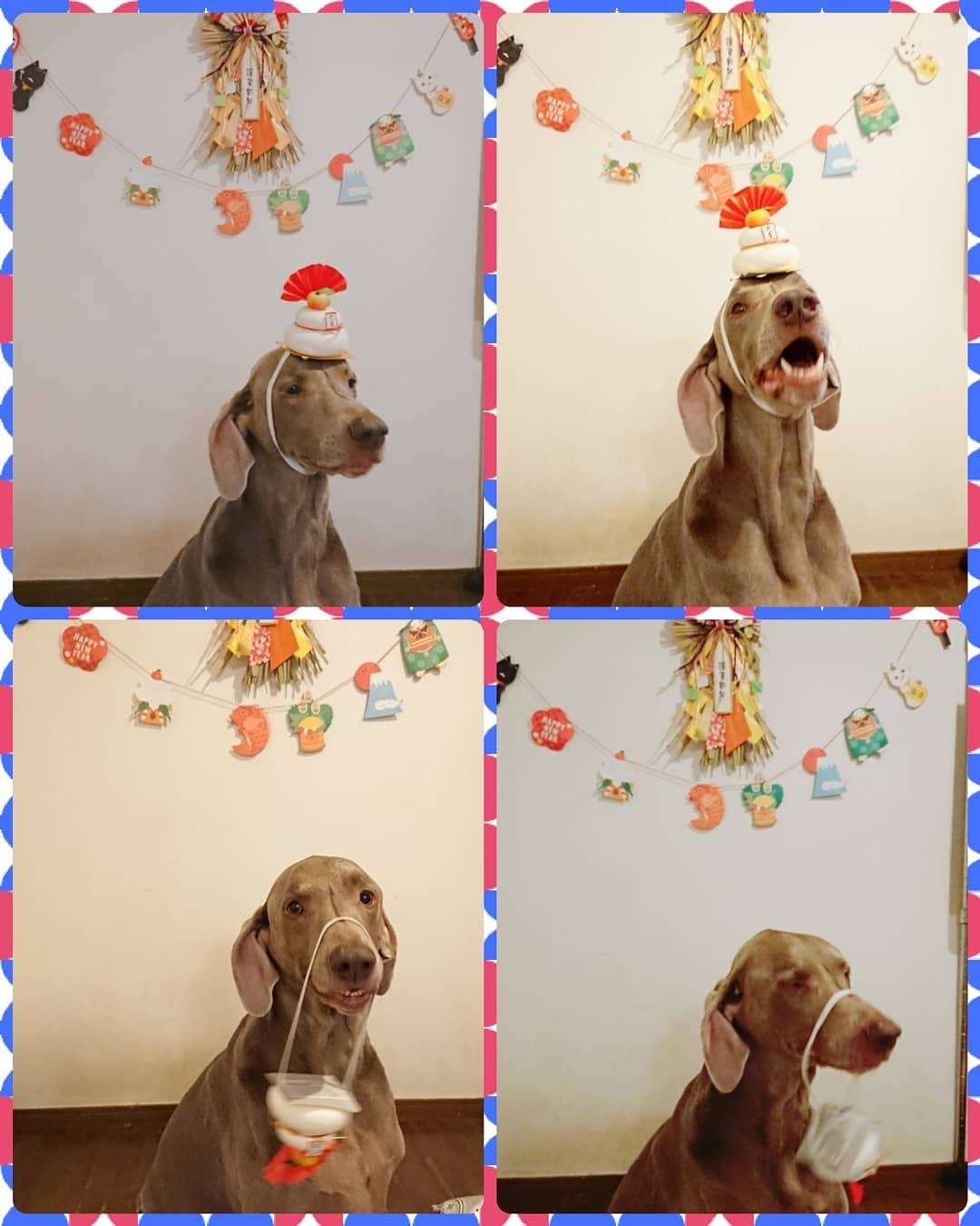 我が家も無事年をこすことができましたUo・ェ・oU毎年高齢、手作り被り物シリーズ★太郎は嫌がったので二郎だけです笑