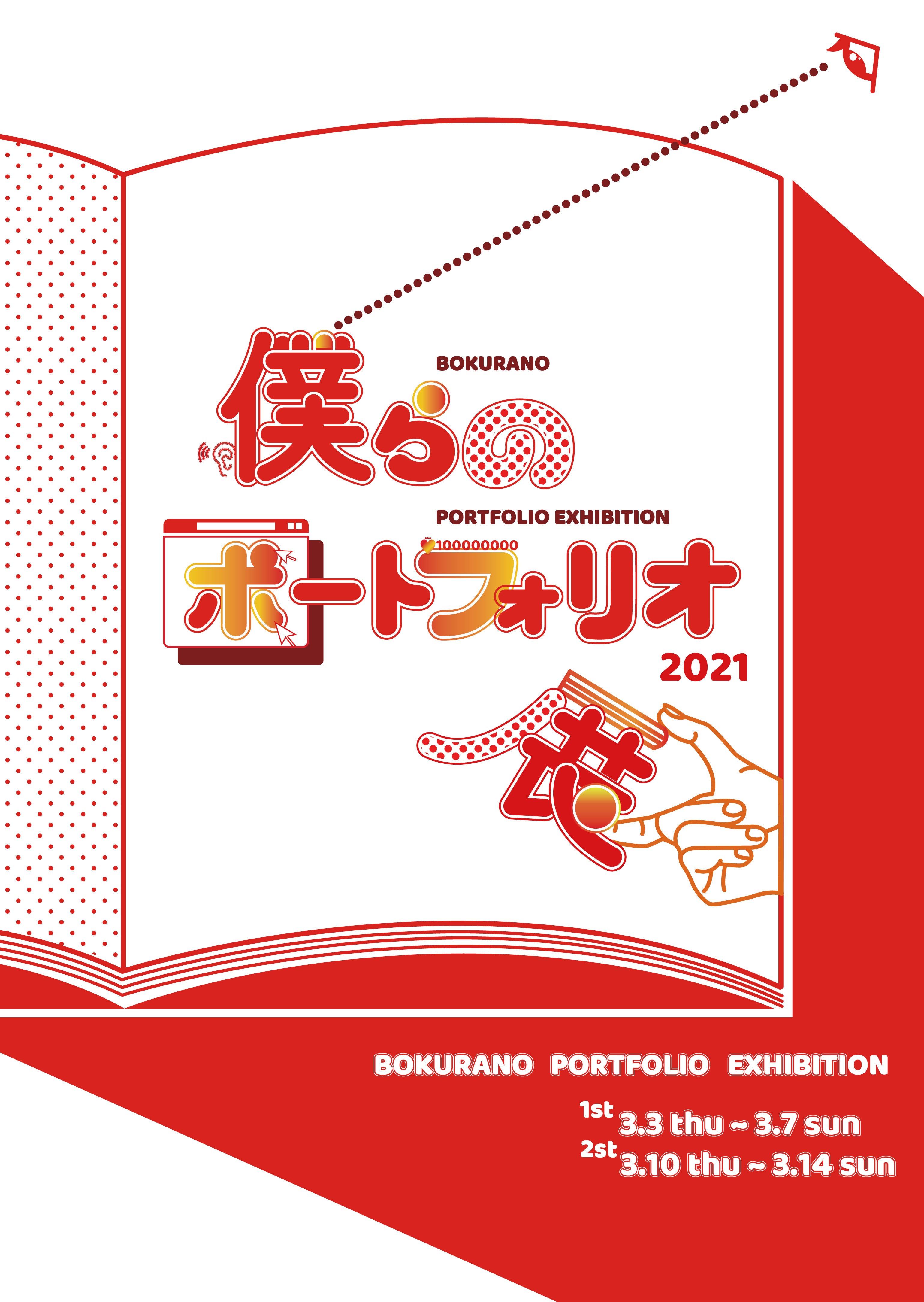 『僕らのポートフォリオ展』通称『僕ポ』は、今年度で 9 年目となる、クリエイティブ系学生のポートフォリオ ( 作品集 ) を集めた学生有志の展覧会です。