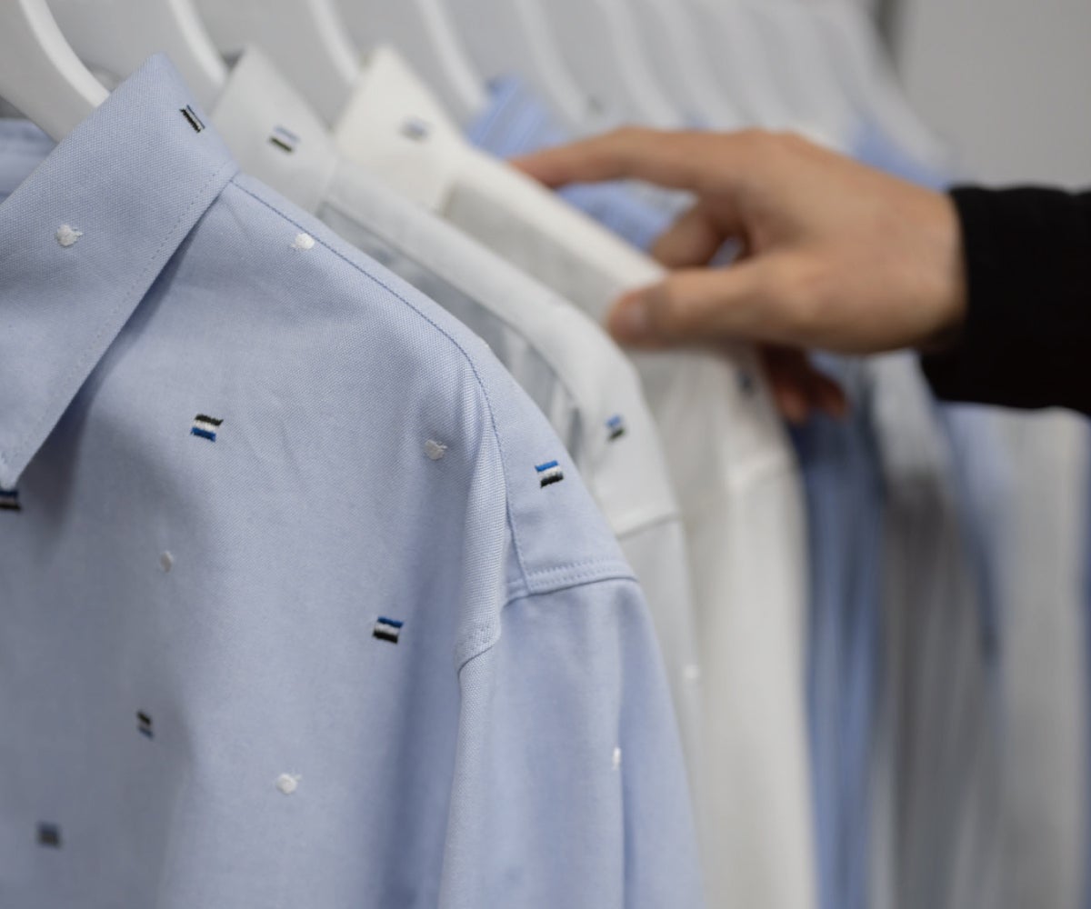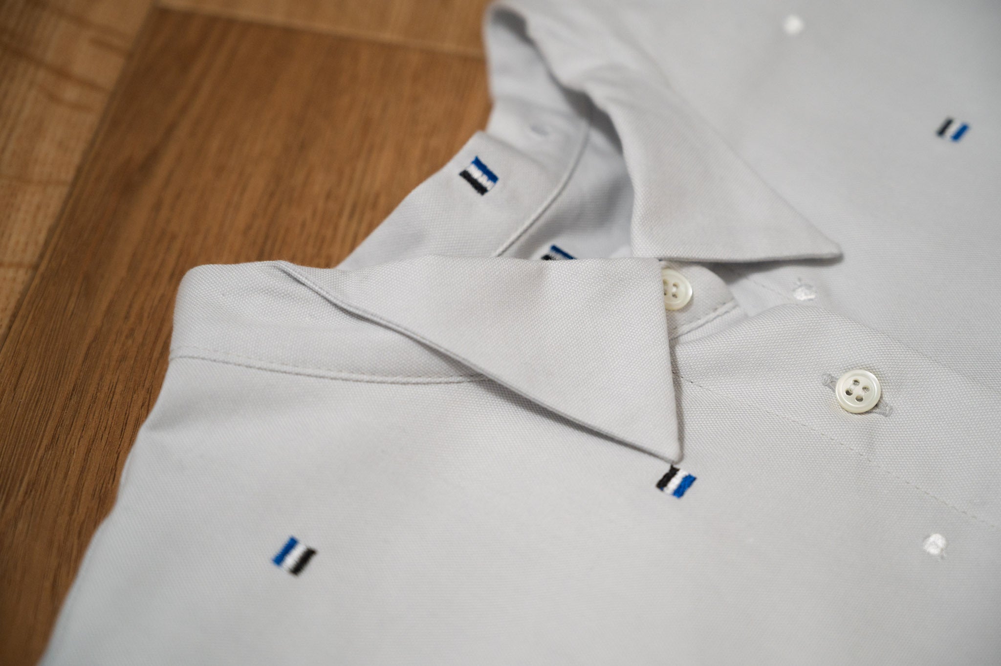ドット状に刺繍したシャツ。