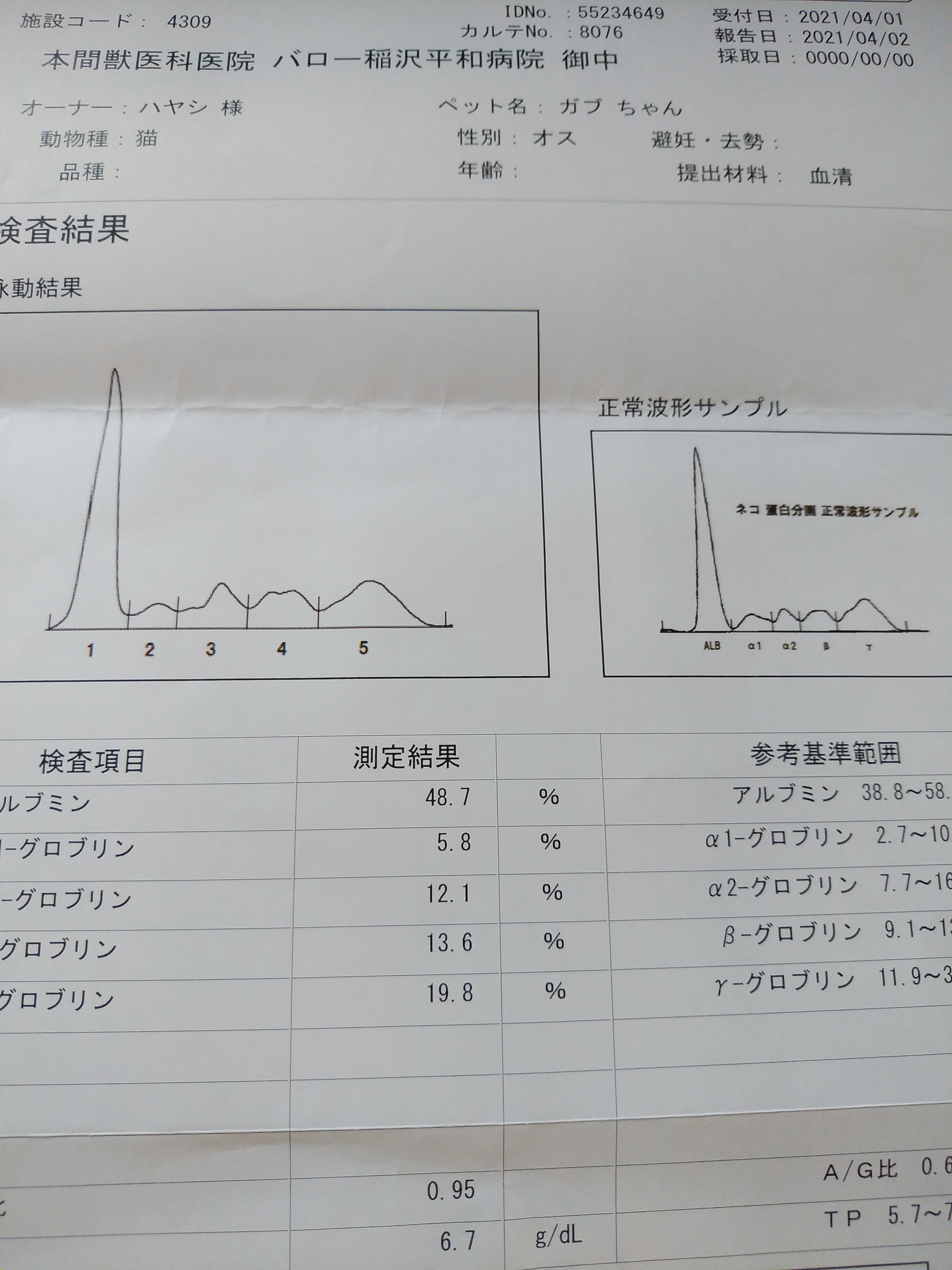 2021/08/06 20:46お久しぶりです。パソコンの調子が悪く中々こちらで報告が出来なくてすみません。ガブの血液検査の結果ですが、良好で、検査は今回で終了でいいと言って頂けました。ただ、ガブの白血病ですが、今回検査に出した結果検査機関で陽性反応が出てしまいました。。。こちらの先生と相談しながら、治療法を考えていきたいと思いますTwitterの方がメインになってしまい申し訳ありません。ガブの事応援してくださって、ありがとうございました。 もっと見る久し振りの投稿で申し訳ありません。