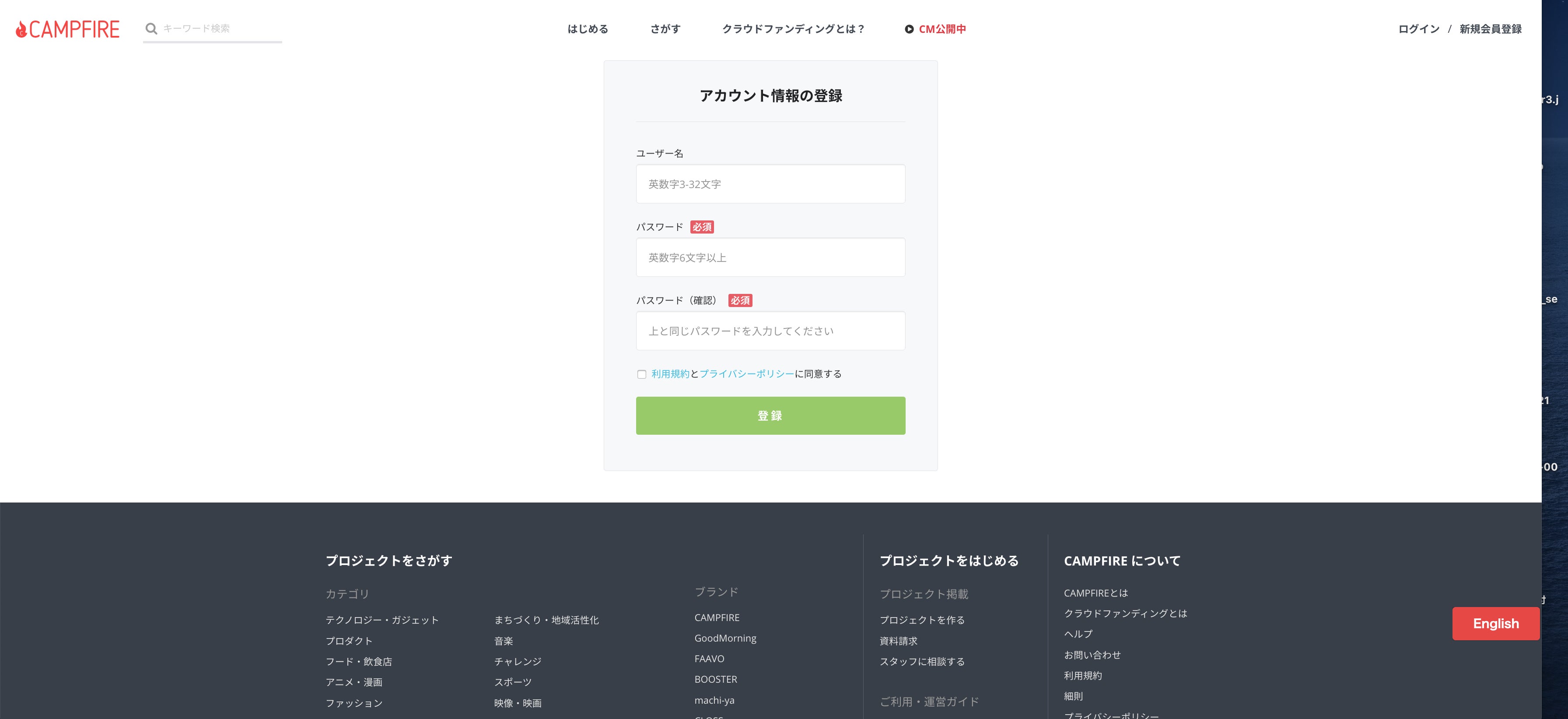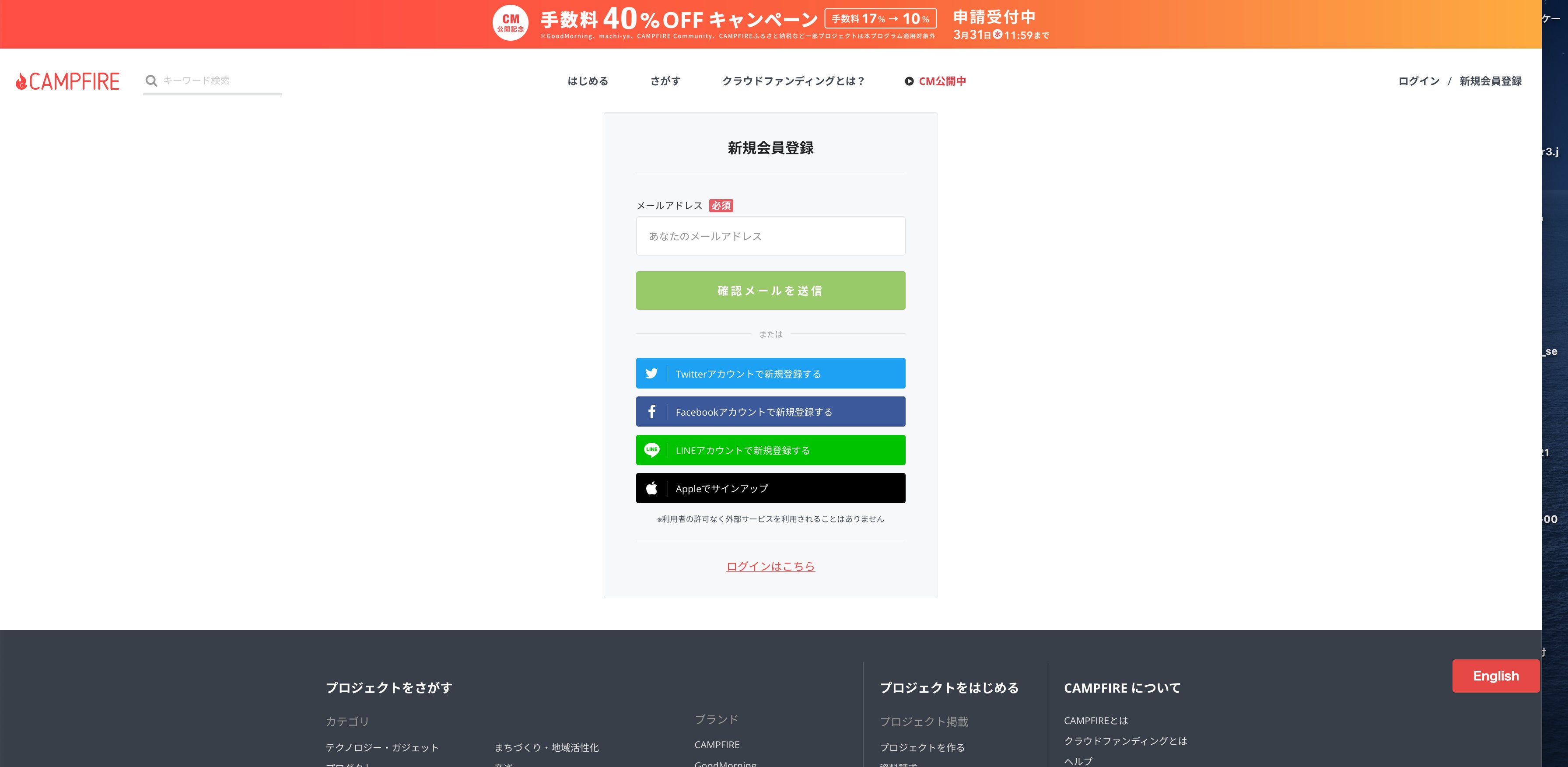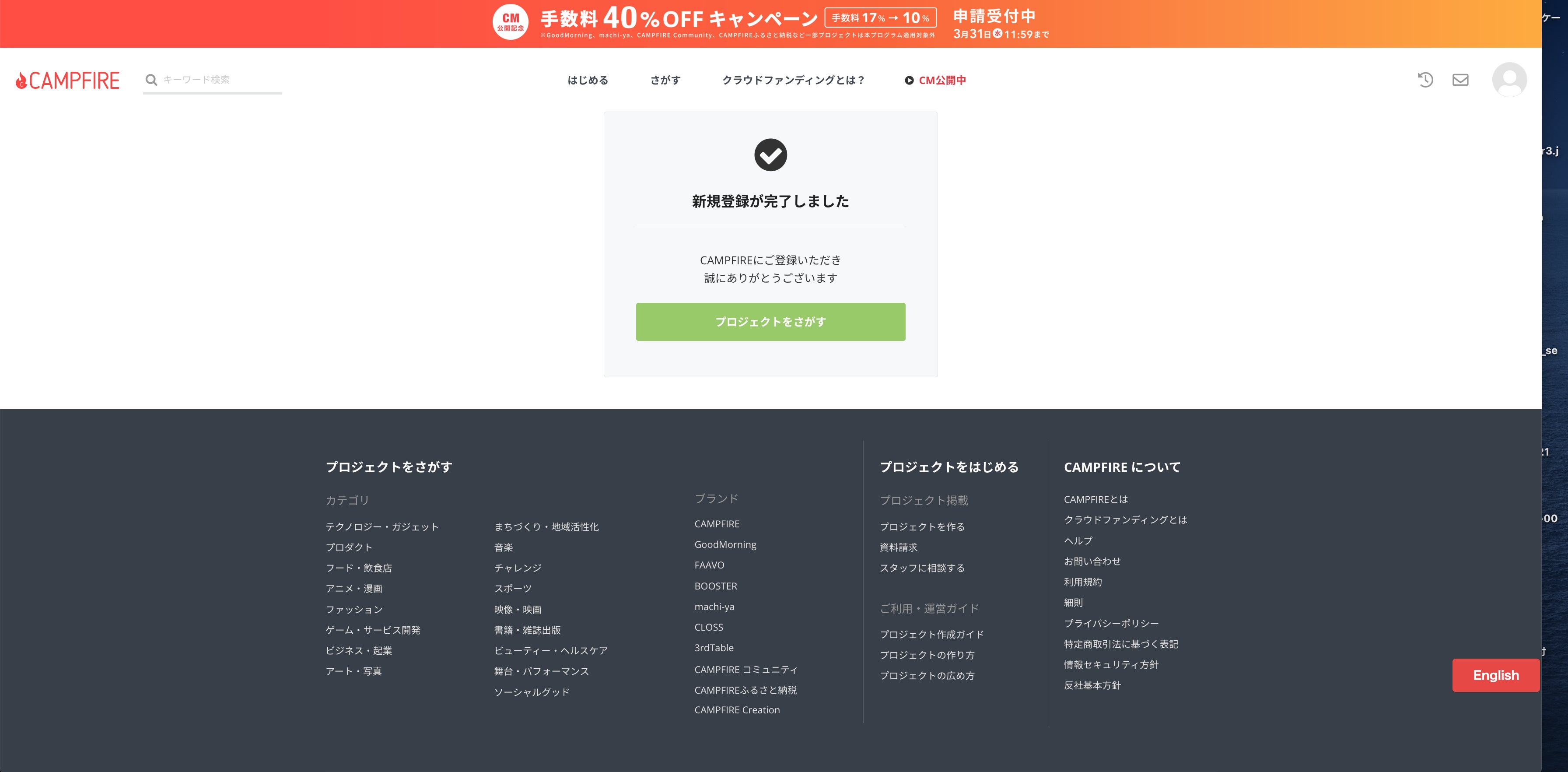 ◯会員登録が完了したら、以下URLからプロジェクトページにお進みください。