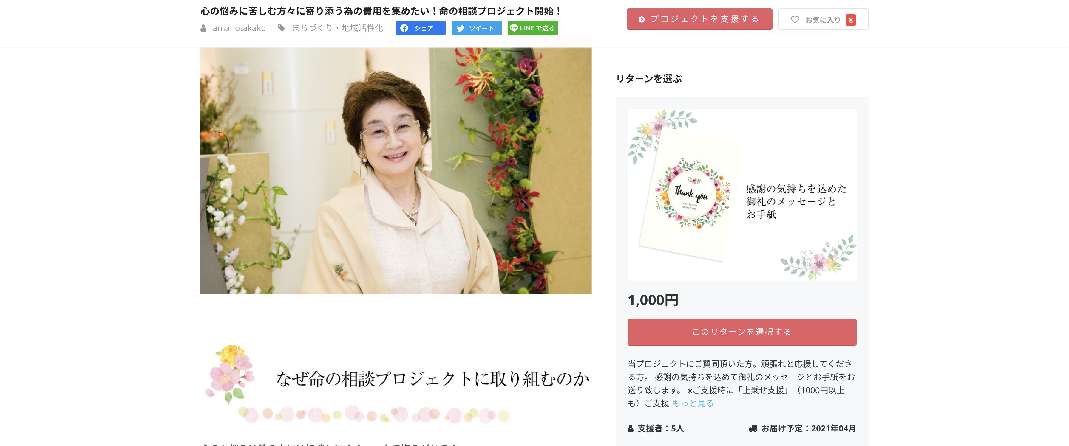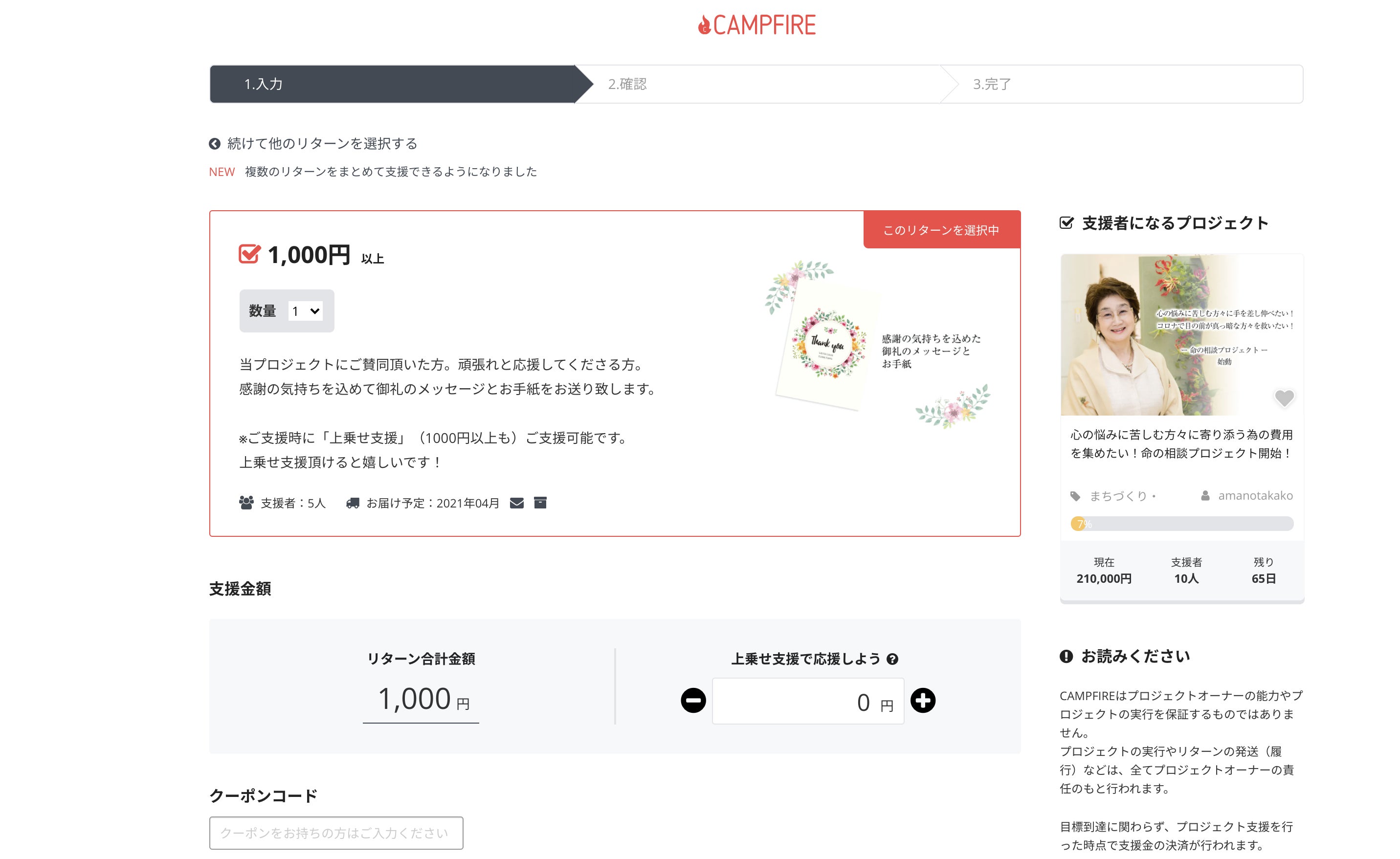 ※御礼のメッセージは1,000円からご支援いただけますが、上乗せ支援も可能ですので、