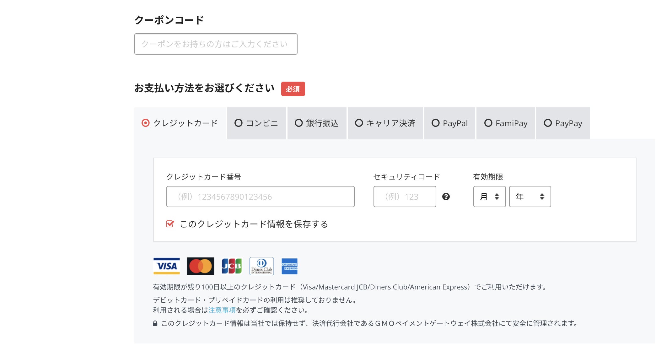 クレジットカードやコンビニ決済、キャリア決済などお選びいただけます。