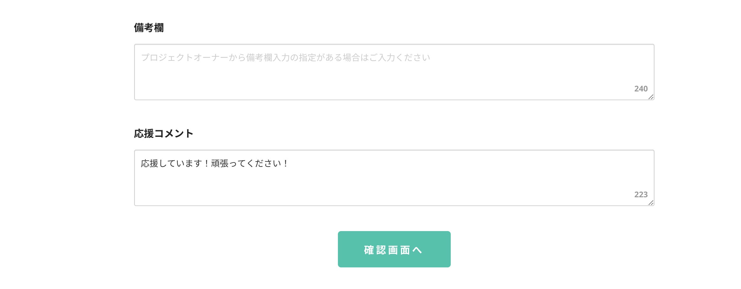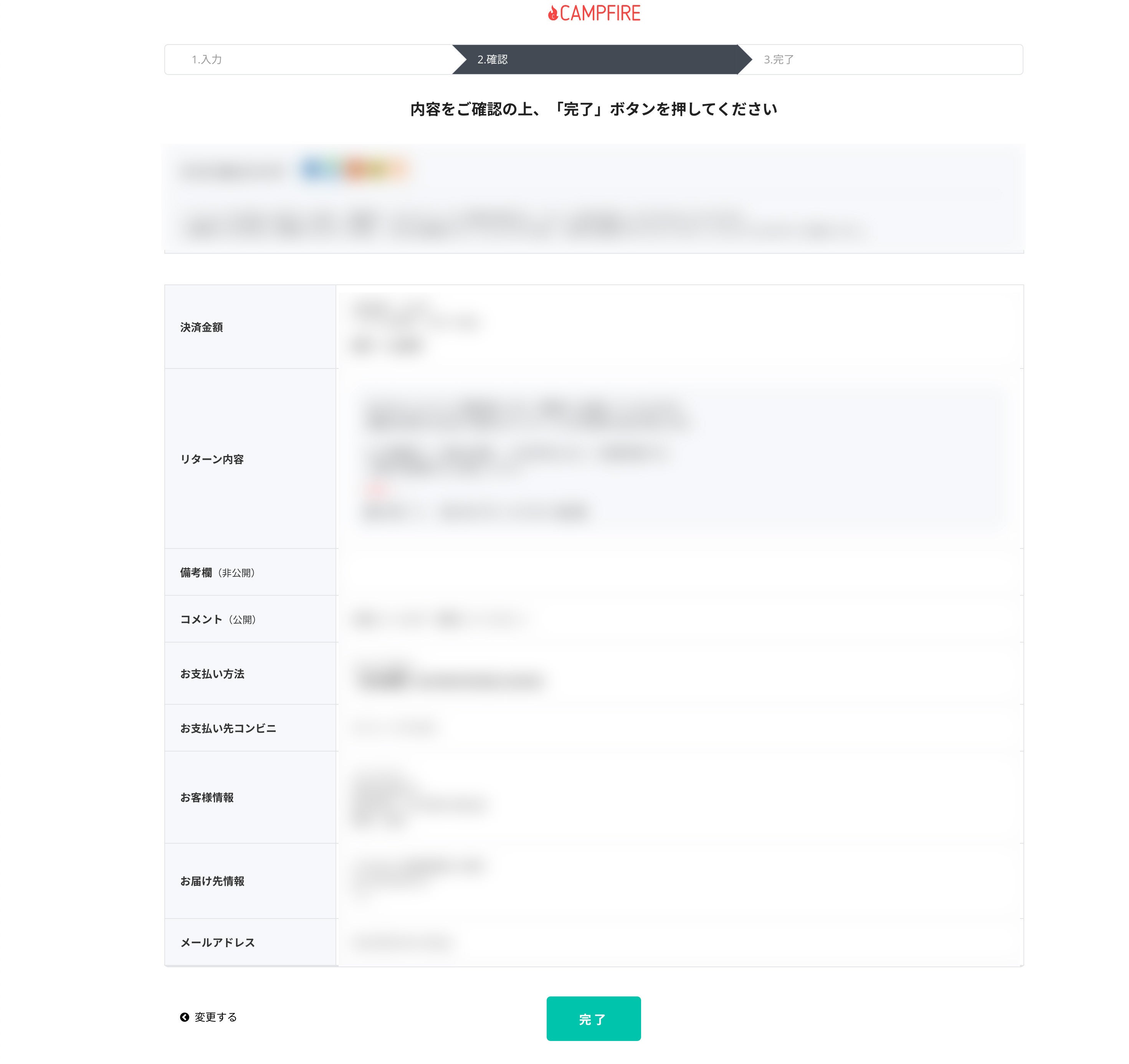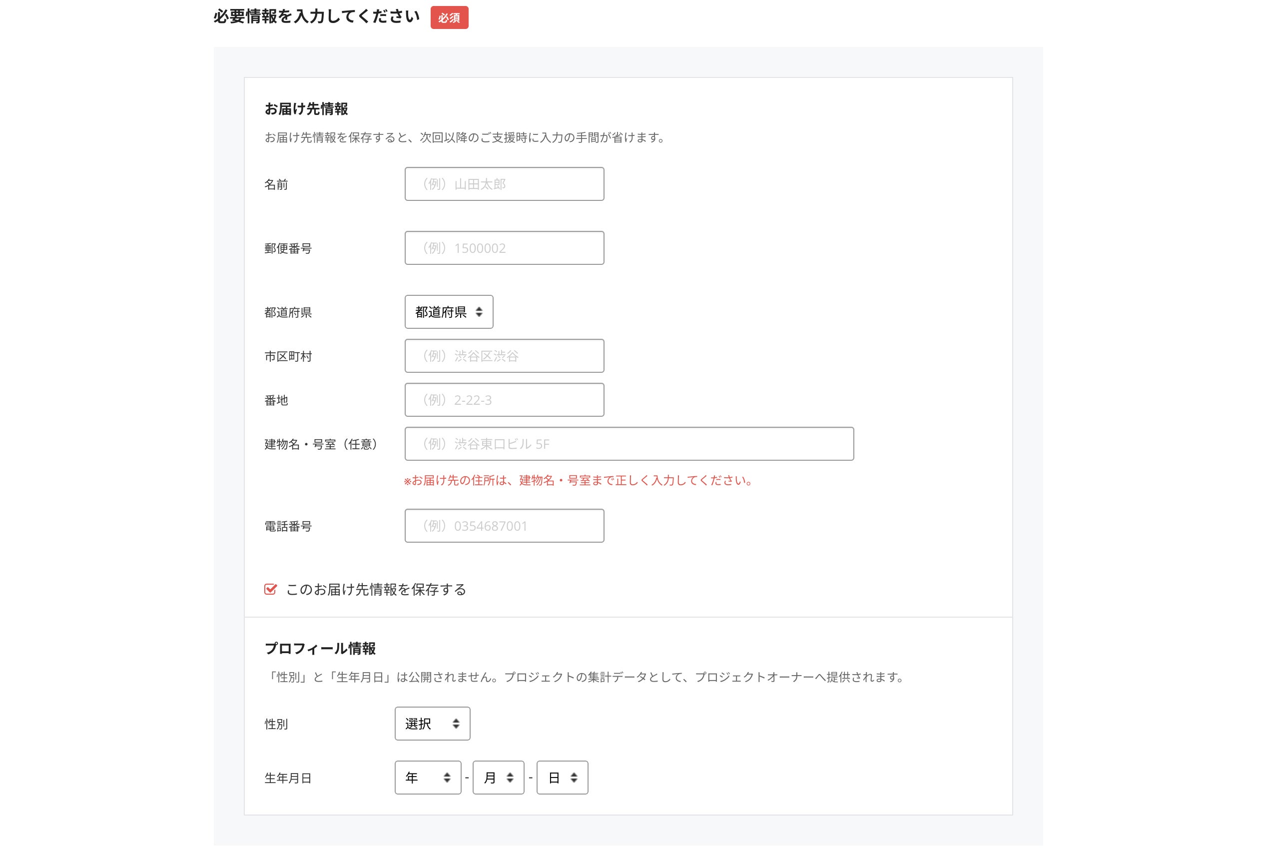 リターン品などをお届け致しますのでご入力宜しくお願い致します。
