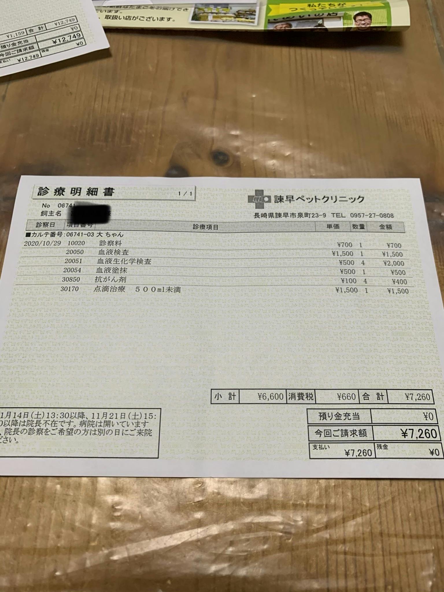 10.21 鼻腔内腫瘍の病理組織検査の結果、悪性リンパ腫との結果でした。治療は山口大学での放射線治療、もしくはかかりつけの動物病院での抗がん剤となります。長崎から山口までの移動距離を考えるとかかりつけ動物病院での抗がん剤の方がいいのではと思い抗がん剤を選択しました。抗がん剤だと1週間に1回の投薬、点滴で25週1クールとなるそうです。1回の投薬に約1万円、その間に血液検査や腫瘍の大きさを確認するためにCTをとったり検査がはいるようです。10月22日血液検査にて腎不全の診断。抗がん剤とともに腎臓の負担軽減のための点滴をすること、食事療法を開始することとなりました。
