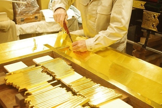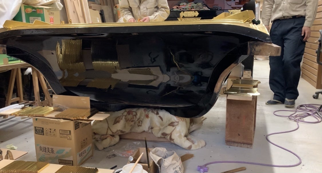 解体して部品単位にした後、漆塗り、彫刻、彫金、飾り物の修復や製作など、いくつかの修復工程を行っています。
