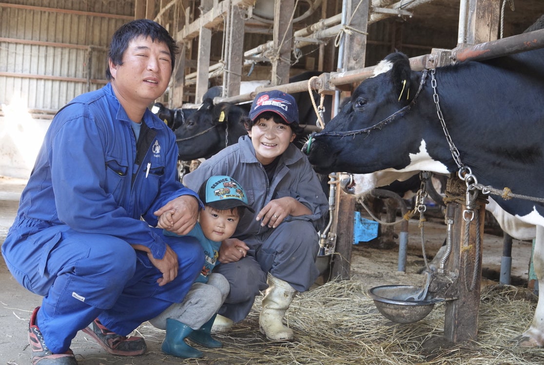 駒ケ根市内で酪農を営む、二ツ木弘幸さん&敏子さん&匠くん。動画メッセージもぜひご覧ください。