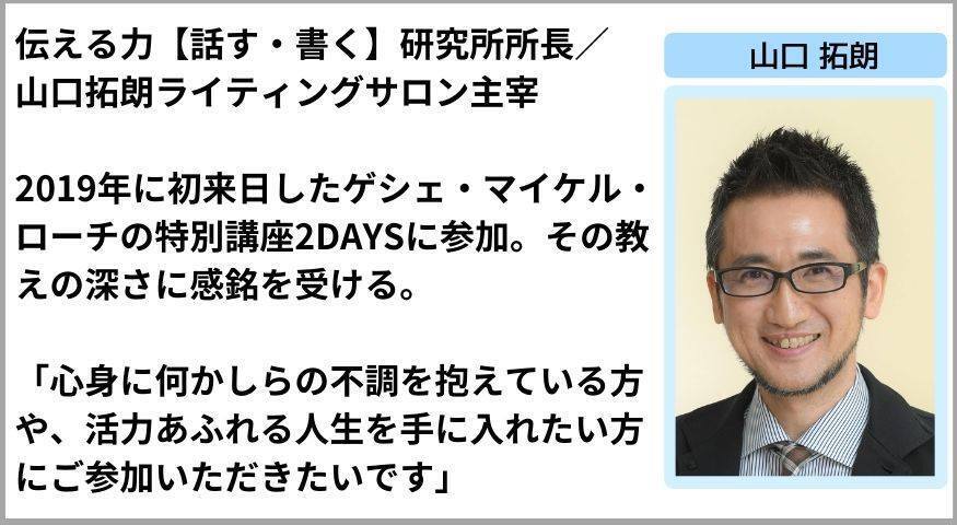 すべて英語で行われるこのセミナーに、日本語通訳付きで日本人も参加できるようにするため、ゲシェ・マイケル・ローチから学んでいる著者5人から魅力的なオファーを提供します。
