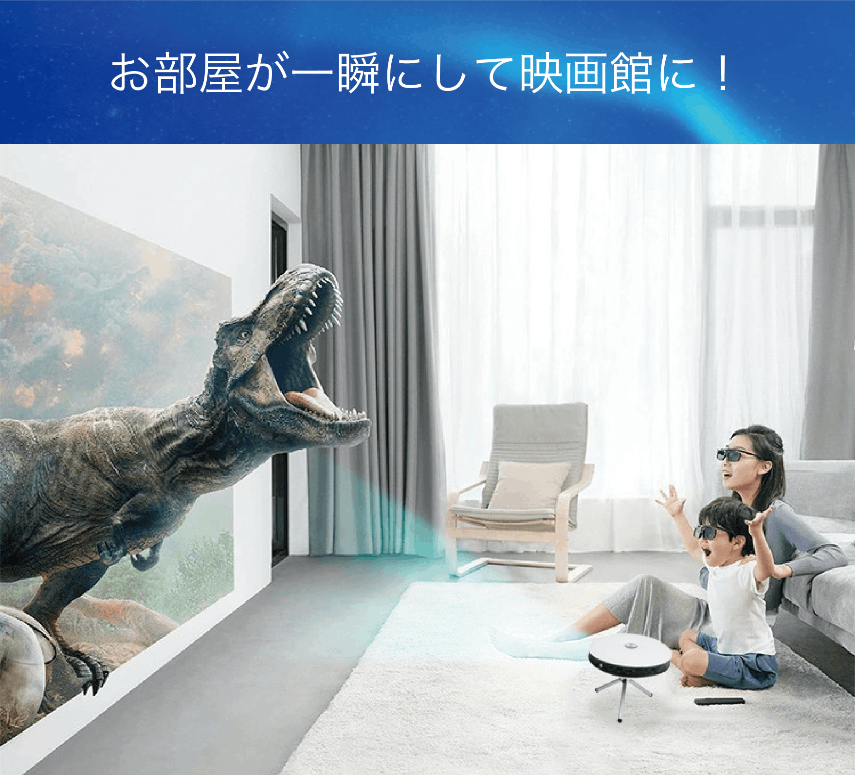 もちろん個人で楽しむために小さなサイズの投影もでき、投影場所に応じて40〜300インチの間で自由に調整できます。