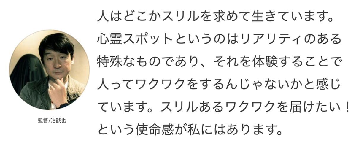 心霊スポットにただ行くだけでなく、ホラー映画監督の撮影現場が見られるという、またとないチャンスです!