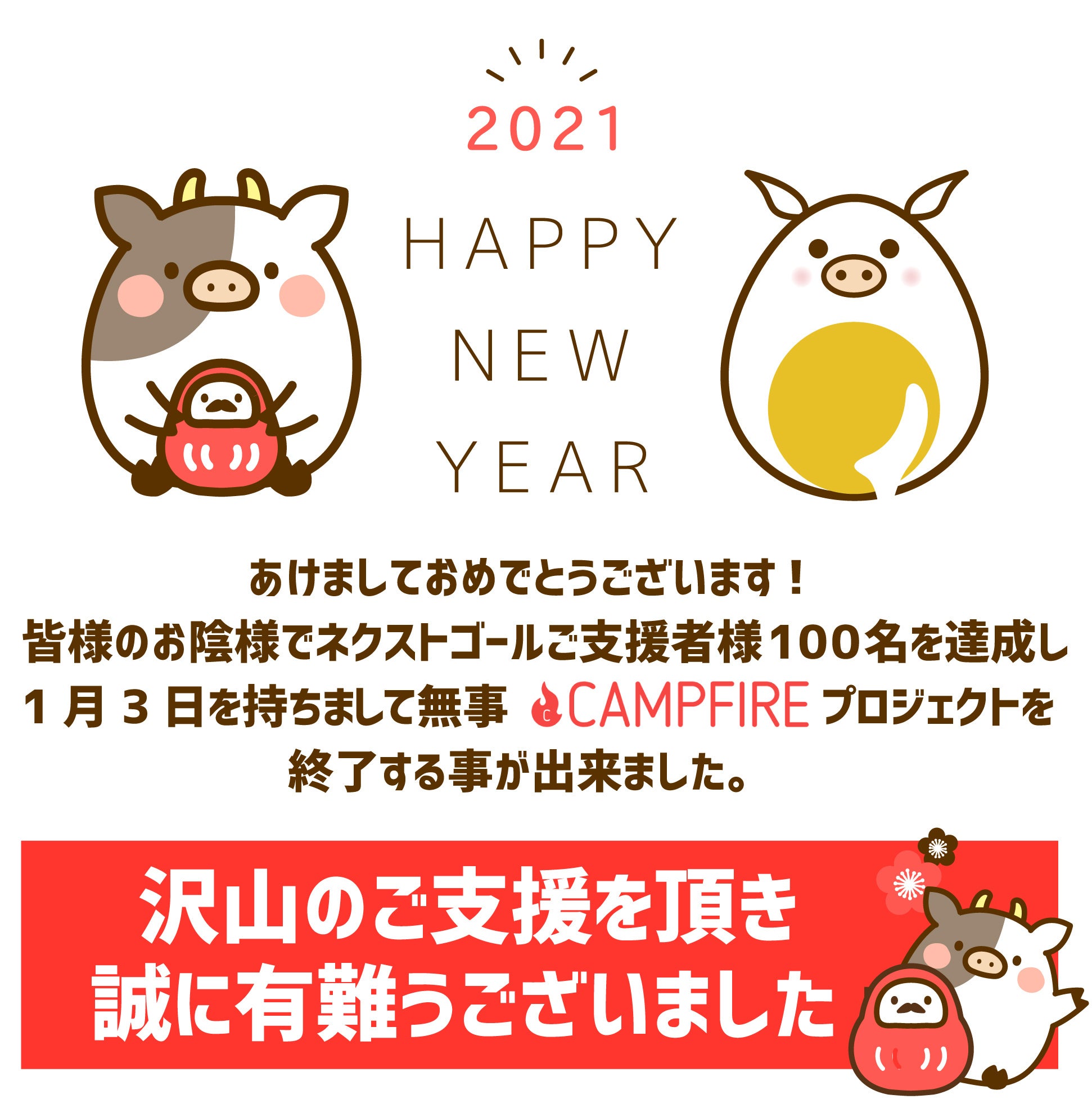 2021/01/04 12:07あけましておめでとうございます。カフェサングリアでございます。ご支援者様110名、総額497,800円のご支援(達成率248%)を頂戴し、1月3日に無事、プロジェクトを終了させて頂く事が出来ました。予想を超える沢山の方よりご支援をいただき、とても嬉しく、心強く感じております。ひとつひとつのメッセージにも大きな力をいただきました。本当に、本当にありがとうございました。リターンの発送につきましては、1月25日までに発送完了する予定でございます。全ての発送が完了しましたら、改めて活動報告をさせて頂きます。カフェサングリア もっと見る