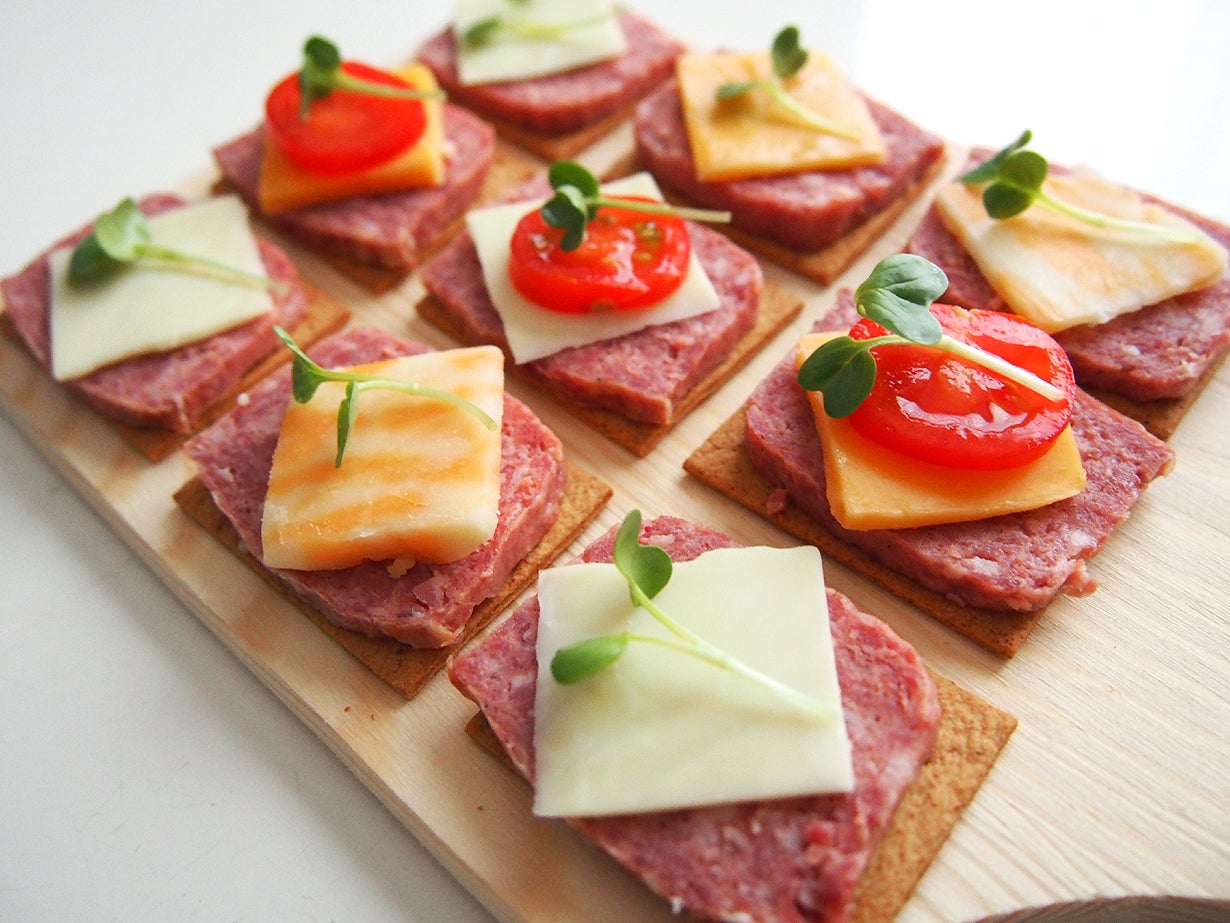 ミートローフをスライスしてフランスパンやクラッカーにのせれば、彩り豊かなカナッペに。