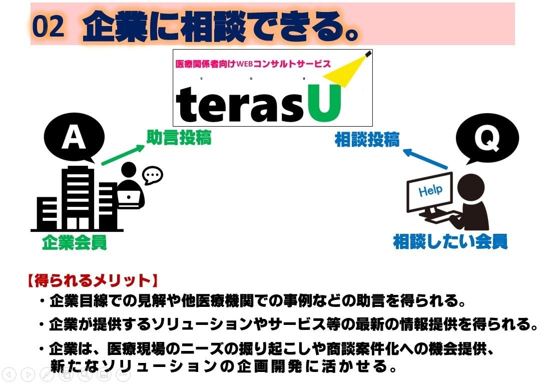 医療従事者向け会員制WEBコンサルトサービス『terasU』は、