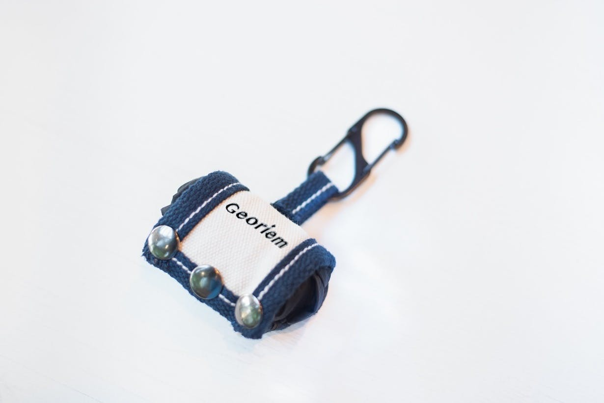 使わないときは、キーホルダー感覚で筒型ホルダーに収納。