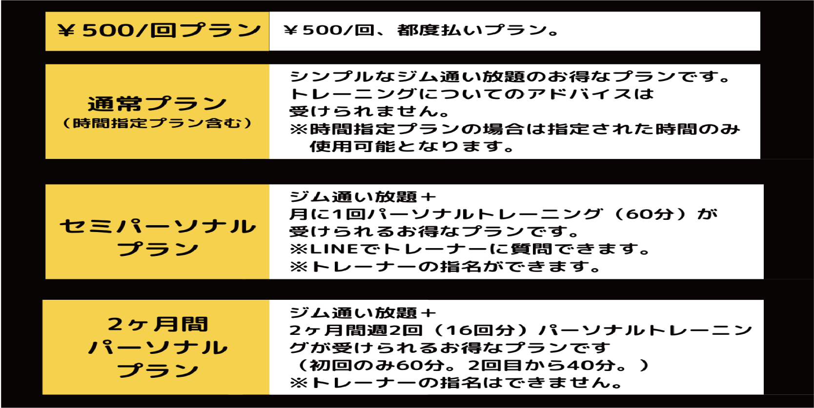 当ジムは一つのジムに登録していただくと提携店に自由に行き来できるシステムを導入予定なので