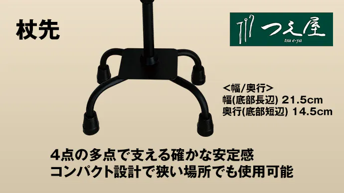 せまい場所でも使用できる、杖先はコンパクトな仕様