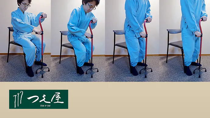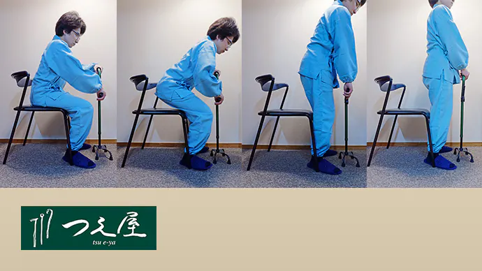 ・「立ち上がり杖」は、杖だけを取り扱う杖専門店の「つえ屋」が作りました。杖をもっと便利に!