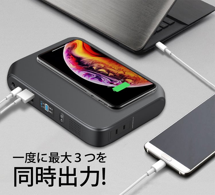 「vavofo」は最大3カ所同時出力が可能です。ノートPCを使用しながら、スマホやタブレットを充電したりと、持ち物を一度に素早く充電できるので、充電の為の待ち時間は限りなくゼロに近づきます。