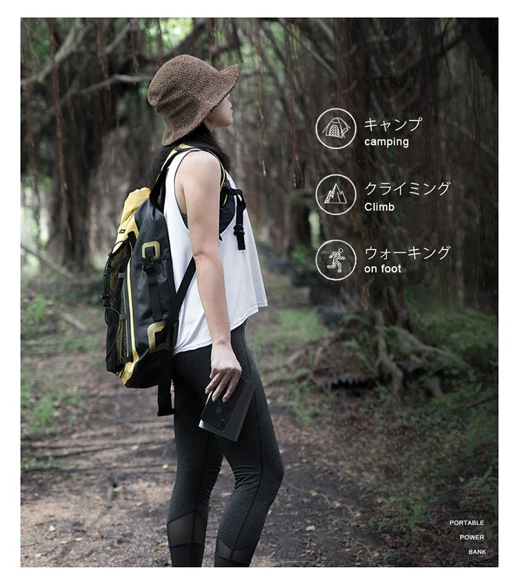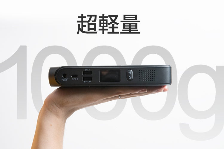 本体の重さはたったの1kg。ポータブル電源としては非常に軽く、コンパクトなので、例えばリュックやバッグに入れて、どこへでも気軽に持ち運んで頂けます。