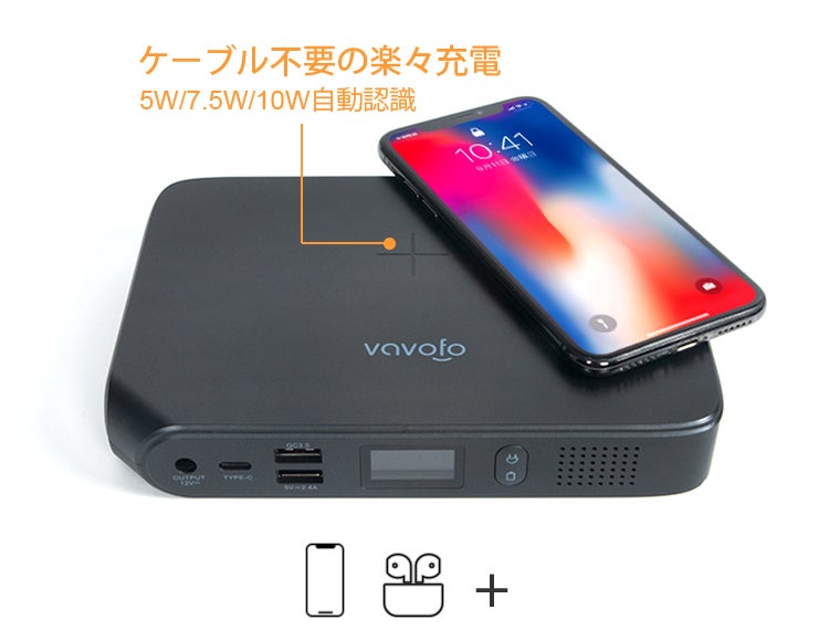 「vavofo」はケーブルをつないで充電するだけでなく、上にポンっと置けばワイヤレス充電が出来るすぐれもの。しかも最大10Wの急速充電なので、有線に負けないスピードで充電してくれます。ワイヤレスイヤホン・スマホ・スマートウォッチなど置くだけで手軽に充電が出来るのも嬉しいです。
