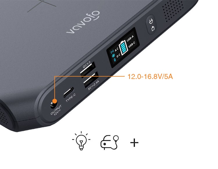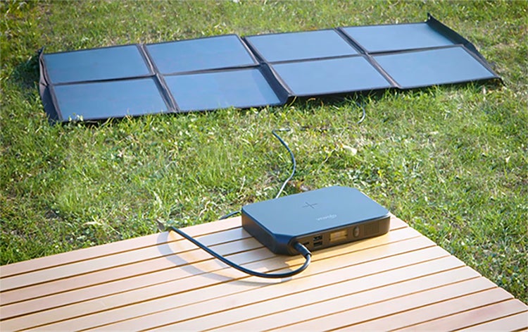 「vavofo」のDCポートは出力だけではなく、ソーラー充電にも対応。50Wのソーラーパネルを使用すれば、約3時間で本体をフル充電することが可能です。