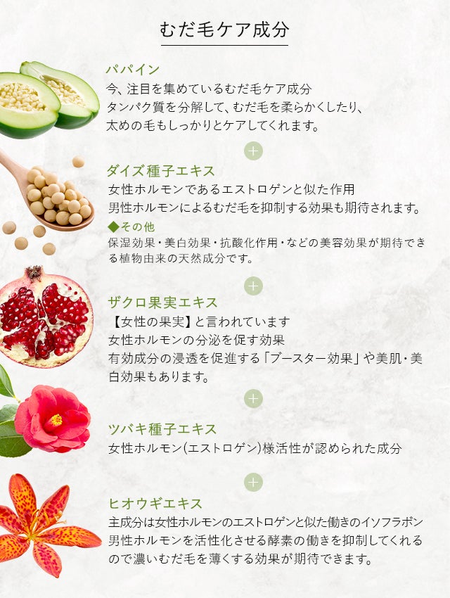 むだ毛ケアには5つの植物由来の天然成分を配合しました