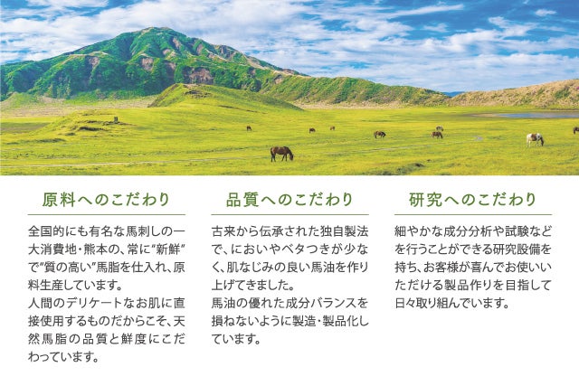 高品質保湿成分『馬油』を配合 赤ちゃんのようなふっくらキメ細かいお肌へ