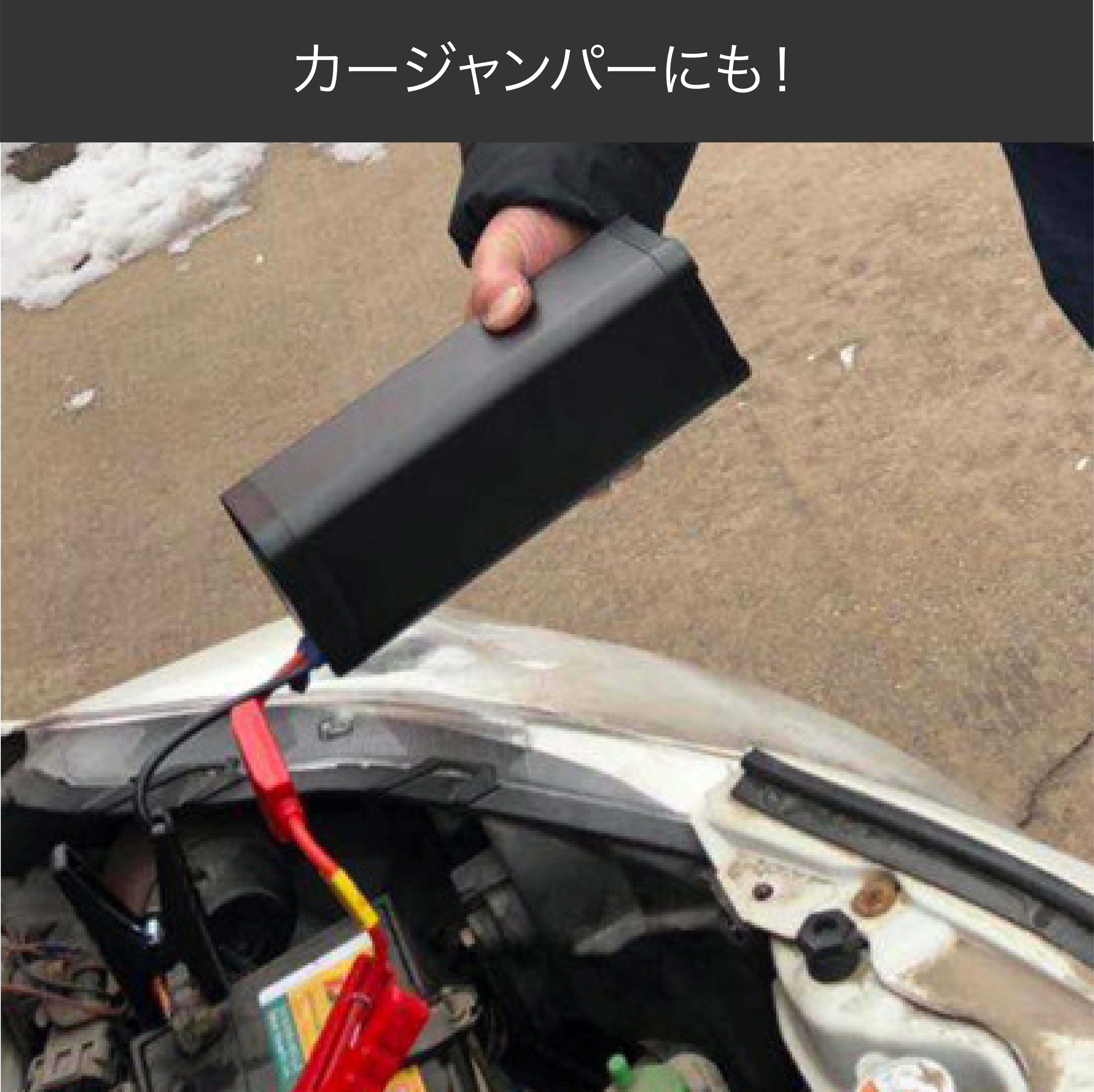 Liberty Portable Power Bank をトランクなどの車の空きスペースなどに収納すれば車のカージャンパーとしても使えます。(接続ケーブルも付属品として同包されています)