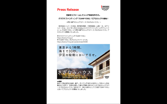 金曜日に開始した本プロジェクト。土日が明けて本日プレスリリースを配信しました。かなりローカルな媒体までお送りさせていただきましたが、反響があることを願って夜も眠れず・・・な気がしています(笑)今後も企画のマイナーチェンジ含めよりよいプロジェクトにブラッシュアップしてまいります!