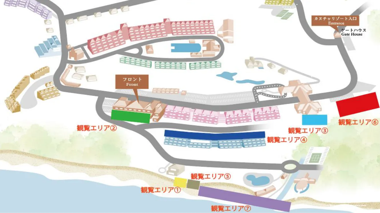 カヌチャリゾート敷地内への入場は、当日にご宿泊、ゴルフのいずれかをご予約している方、もしくは花火観覧チケットをお持ちの方のみとなります。