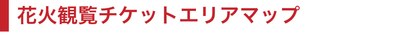 花火観覧チケットのSS席が観覧エリア①、A席が観覧エリア⑤になります。なお、それ以外の観覧エリアの花火観覧チケットの販売に関しても、検討しておりますので、今しばらくお待ちください。